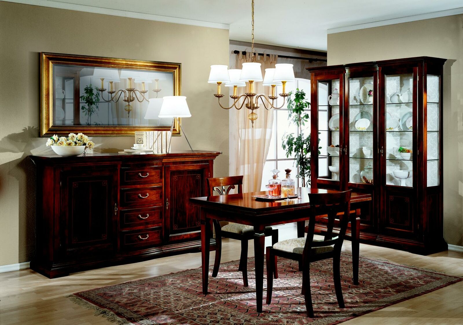 Tato kompletní sestava jídelního pokoje vám nabízí veškerý nábytek potřebný pro dokonalé zařízení vaší jídelny. Sestava obsahuje jídelní stůl s rozšířením až na délku 220 cm, 2 elegantní židle bez opěrek, impozantní vitrínu a prostornou komodu. K dokončení celkového vzhledu je v sestavě zahrnuto i zrcadlo, které skvěle doplní prostor a prosvětlí místnost. Všechny kusy nábytku jsou vyrobeny z kvalitního dřeva, což zaručuje jejich trvanlivost a elegantní vzhled. Tato sestava je ideální pro každou domácnost, která si cení stylového a funkčního zařízení jídelny.