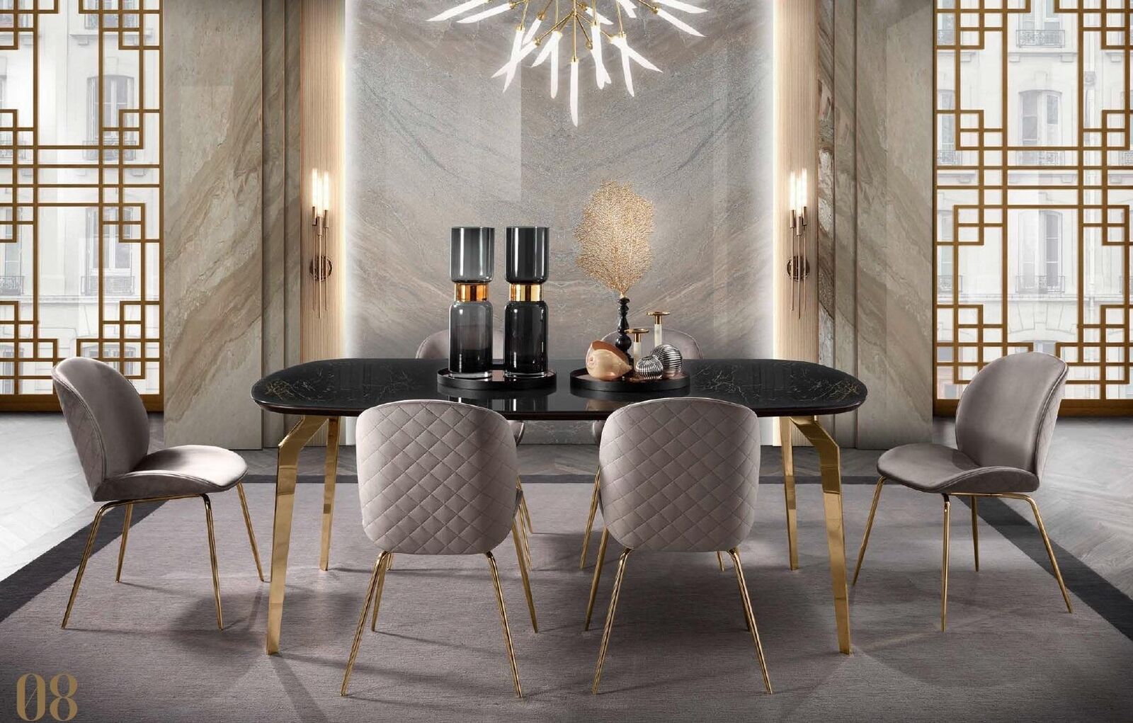 Tento luxusní jídelní stůl představuje kombinaci elegance, designu a praktičnosti. Stůl jídelní design nábytek Itálie je vyroben z nerezové oceli, což zajišťuje dlouhou životnost a odolnost. S rozměry cca 250 x 115 x 79 cm poskytuje dostatek prostoru pro pohodlné posezení a společné stolování. Jeho elegantní mramorová deska vytváří luxusní vzhled, který zaujme každého hosta.