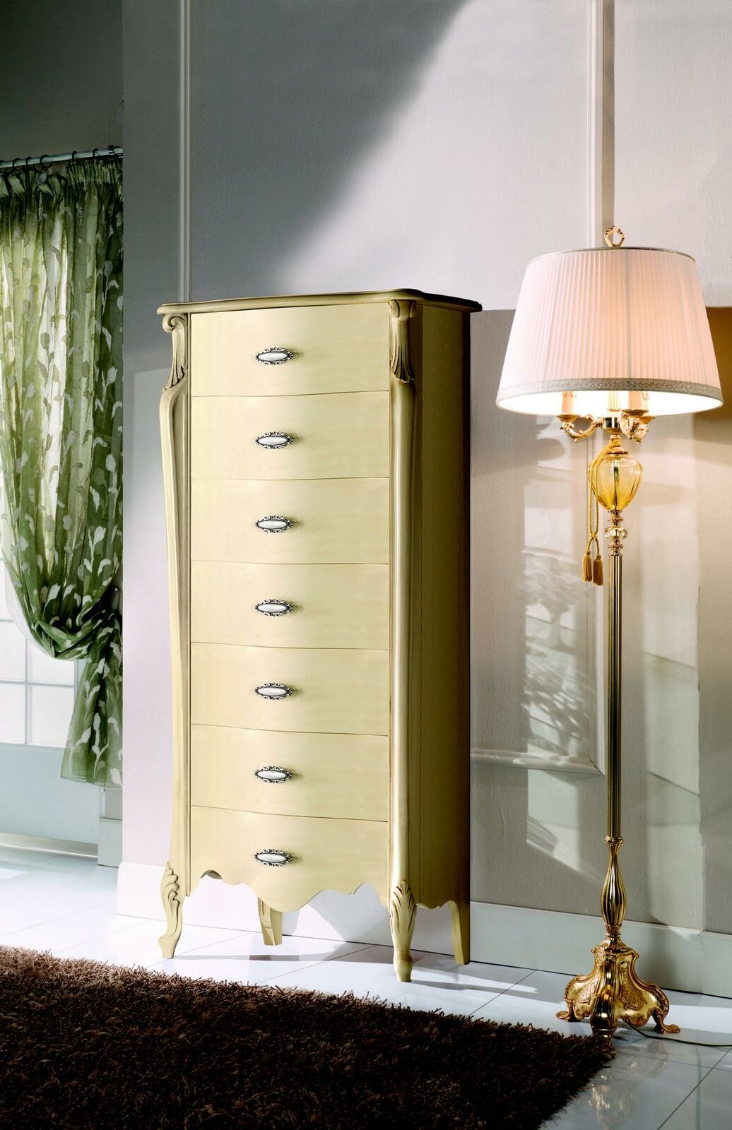 Italský nábytek z dubového dřeva, elegantní komoda 120 cm vysoká se 7 zásuvkami.