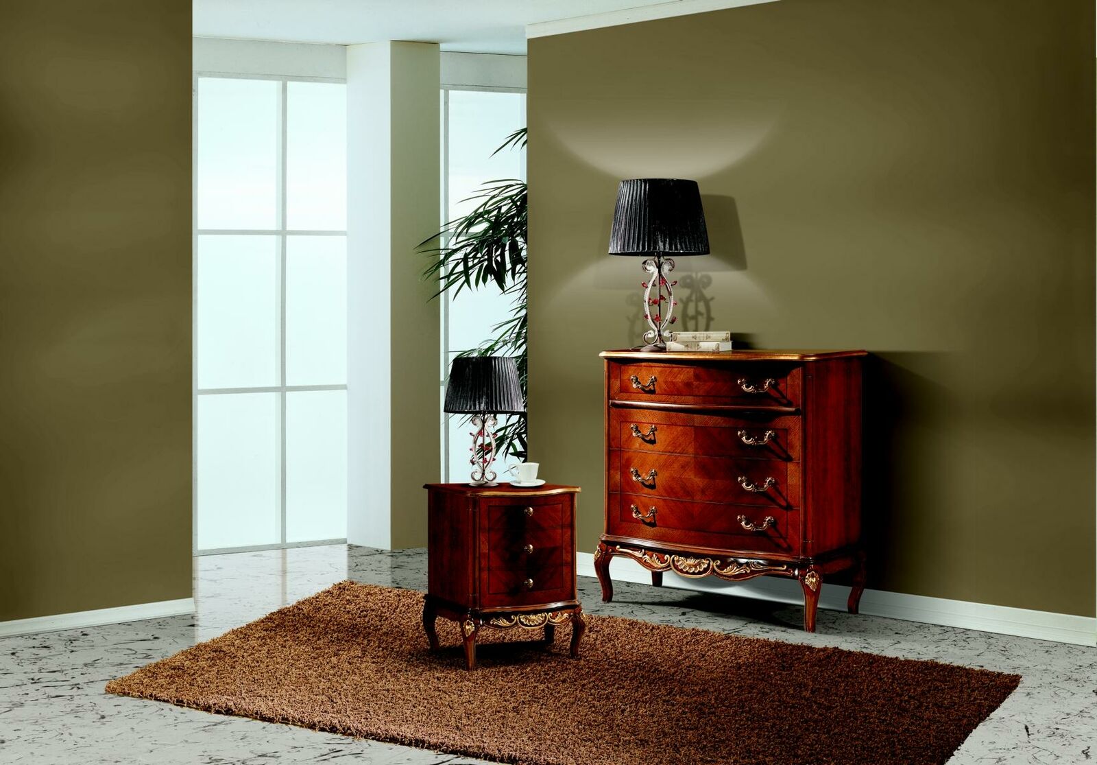 Italské barokní nábytek, noční stolek, ložnice, malá komoda, dřevo, hnědá, nová.