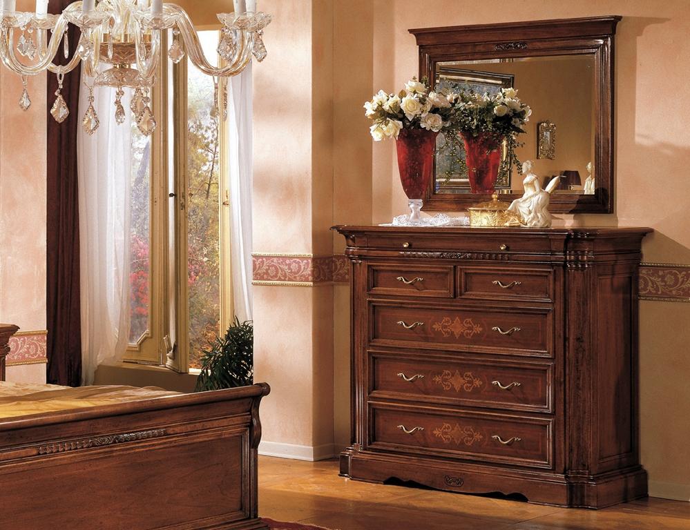 Masivní komoda z masivního dřeva s dodávkou zrcadla Italský nábytek 2 kusy.