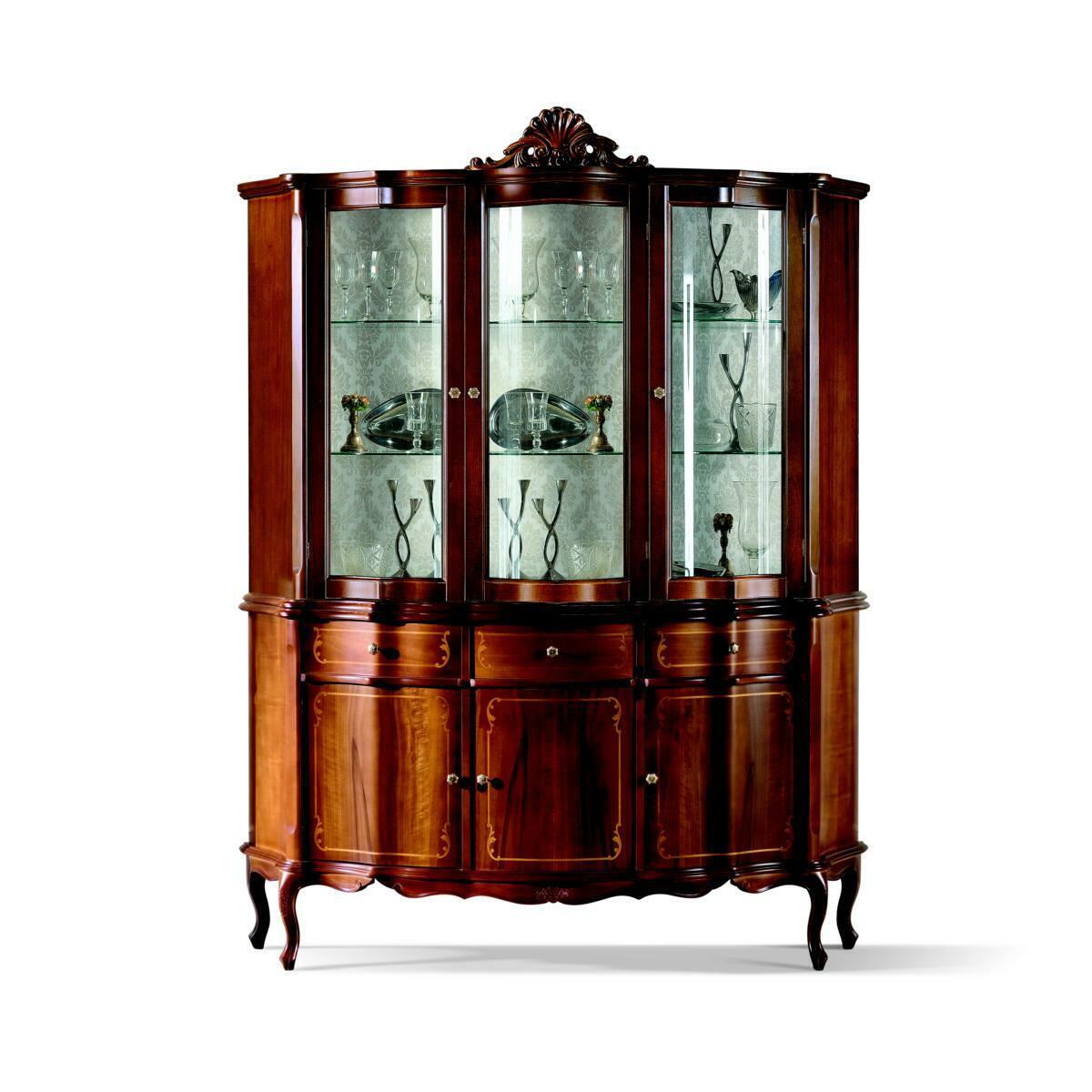 Klasický nábytek ze dřeva v hnědé barvě Vitrína Elegantní skleněný design Italský nábytek je elegantní vitrína, která dodá vašemu domovu šarm a luxusní vzhled. S rozměry přibližně 165 * 48 * 217 cm nabízí dostatek prostoru pro exponování vašich oblíbených předmětů a sbírek. Vitrína Elegantní skleněný design je vyrobena z kvalitního dřeva, což zaručuje dlouhou životnost a odolnost.