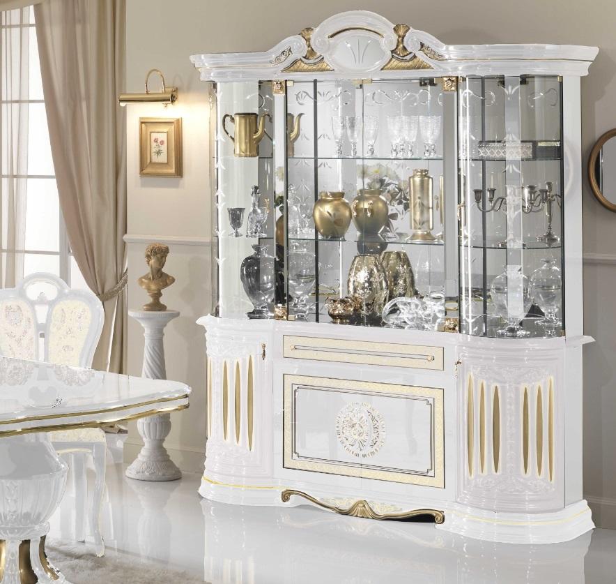 Vitrína italský nábytek obývací pokoj Skříň Bílá Zlato Skleněná vitrína Skříně Nový