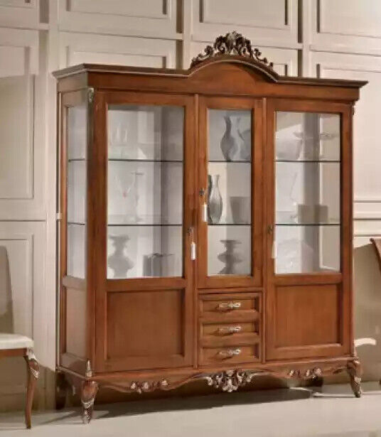 Vitrína Skříň Zasklená Vitrína z Dřeva Klasický Design Dřevěné Vitríny Pro Obývací Pokoj Sklo