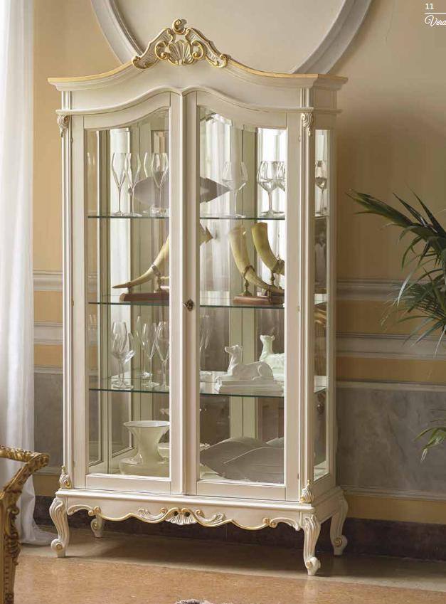 Vitrína Skříň Skříně Obývací pokoj Masivní dřevo Design Baroko Rokoko Bílá nová