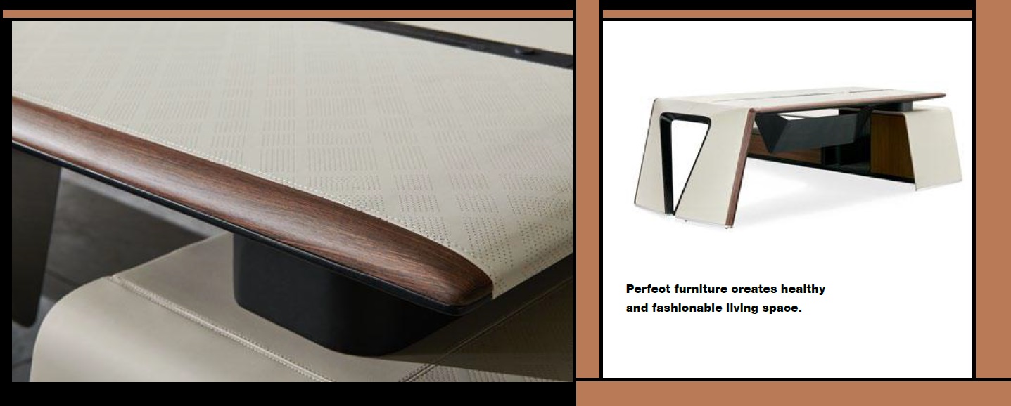 Design kancelářský stůl Stůl Křeslo Vybavení Rohový stůl s židlí 2 kusy je ideální volbou pro moderní pracovní prostředí. S rozměry rohového stolu cca 261 cm délka, 75 cm výška, a 232 cm šířka a křesla cca 63,5 cm délka, 119,5-129,5 cm výška, a 71 cm šířka, tento sadový nábytek skvěle poslouží při práci i setkáních s kolegy. Vyrobena ze směsi materiálů MDF, PU, Dýhy a Nerezové oceli, tento set nabízí odolnost a styl v jednom. Barva je elegantní a lze vidět na vizualizaci. Stůl a židle mají moderní design a poskytují pohodlí během dlouhých pracovních dnů.