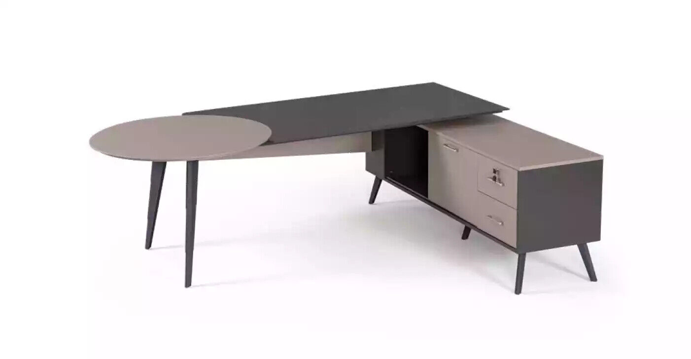 Moderní kancelářská sada pro pracovnu Kompletní designérský psací stůl Nábytek je skvělým doplňkem každé moderní pracovny. Tato sada obsahuje rohový stůl s rozměry cca 240 x 180 x 75 cm, konferenční stolek s průměrem 60 cm a výškou 45 cm, a kancelářskou skříň s rozměry 180 x 40 x 105 cm. Všechny kusy jsou vyrobeny z kvalitního dřeva a mají elegantní design. Barva je moderní a elegantní, perfektně ladící s mnoha různými interiéry. Tato kancelářská sada je nejen stylová, ale také praktická a funkční, poskytující dostatek prostoru pro efektivní práci.