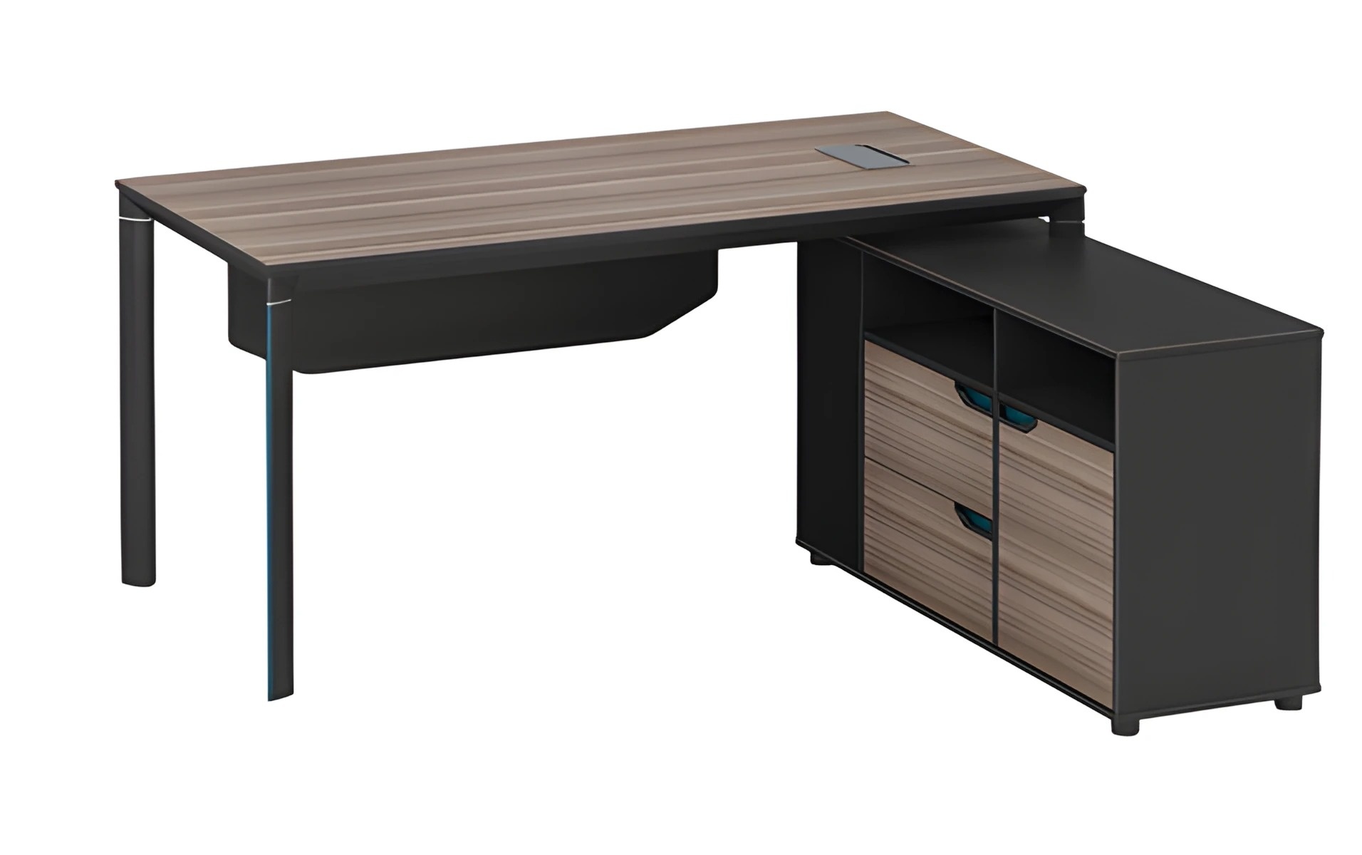 Moderní rohový stůl v hnědém a černém dřevě s úložným prostorem
