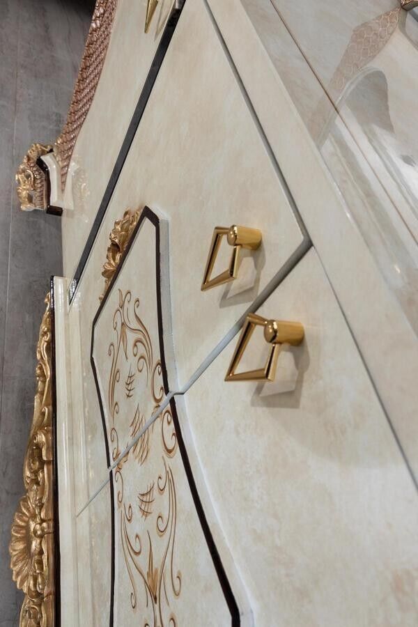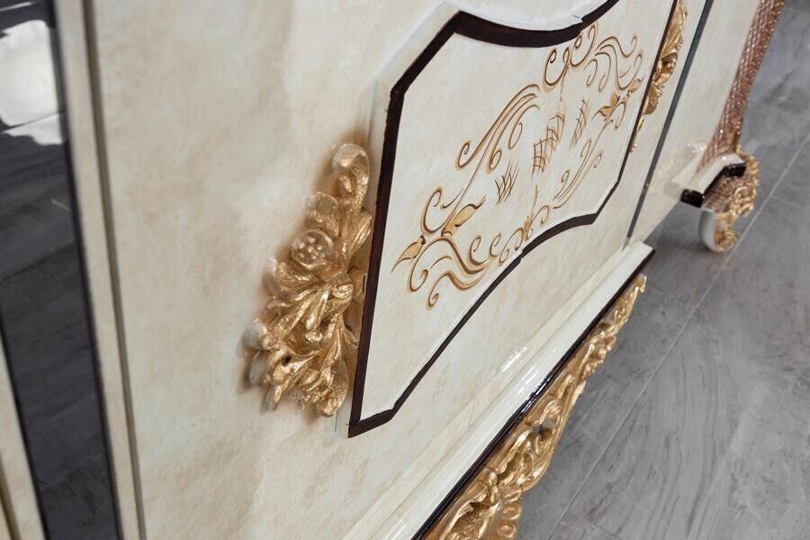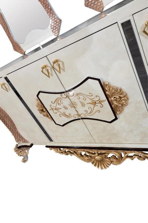 Luxus jídelní sestava 9 dílná. Jídelní stůl + 6x židlí + komoda s zrcadlem bílá nová