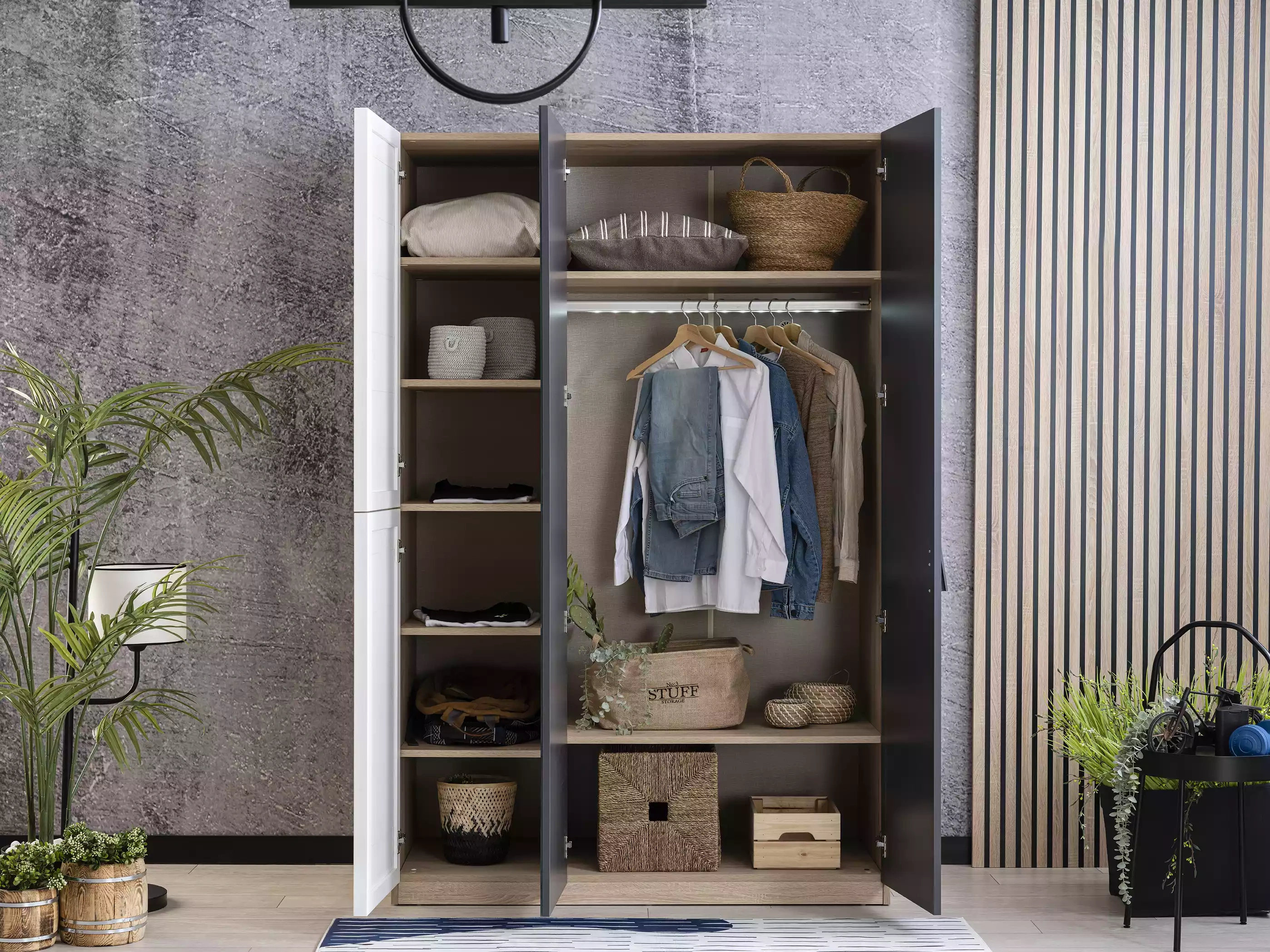 Skříň 3-dveřová Moden Dřevěná Šedá Zrcadlo Dětský pokoj | xlnabytek.cz