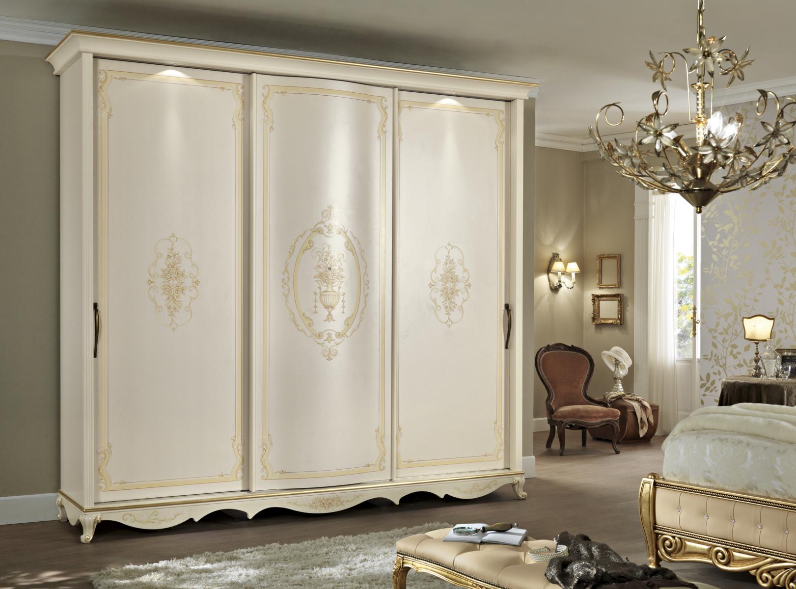 Šatník z masivního dřeva, nábytek do ložnice, designový šatník v bílé barvě.