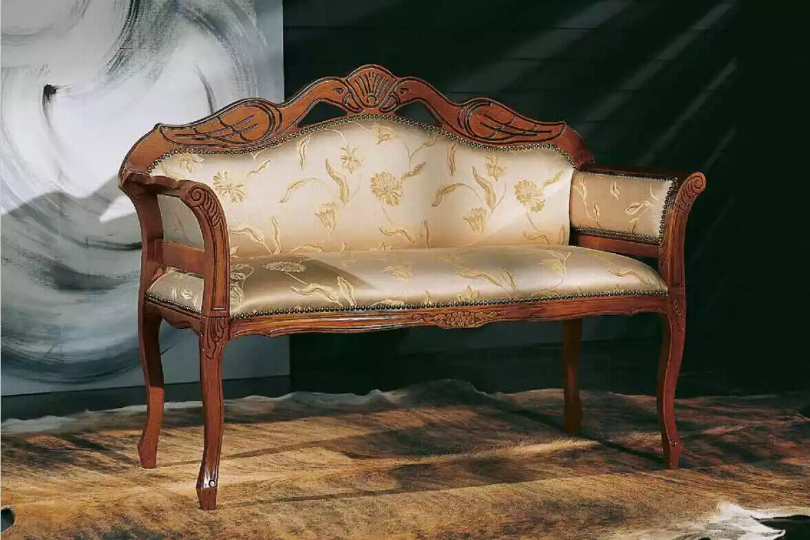 Klasická barokní sedací lavice s potahem, lavice luxusní dvoumístné nábytek.