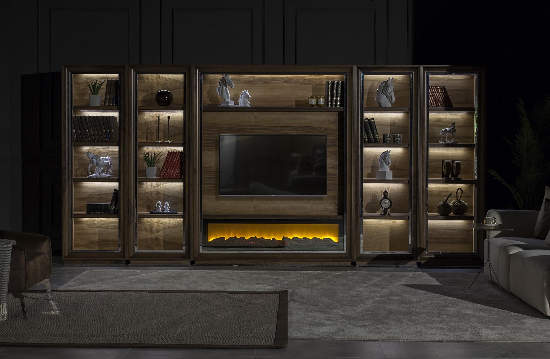 Luxusní obývací stěna 448 cm s krbem z dřeva | xlnabytek.cz