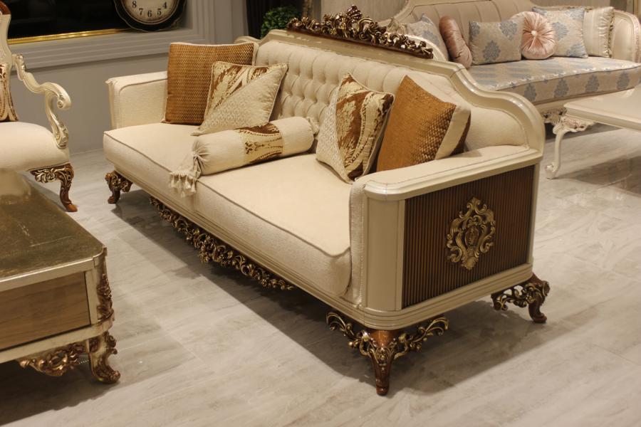 Luxus 3-místná pohovka Obývací pokoj Nábytek Elegantní pohovka 3-místná Textil Beige