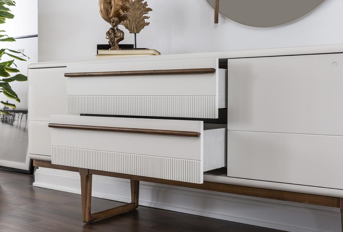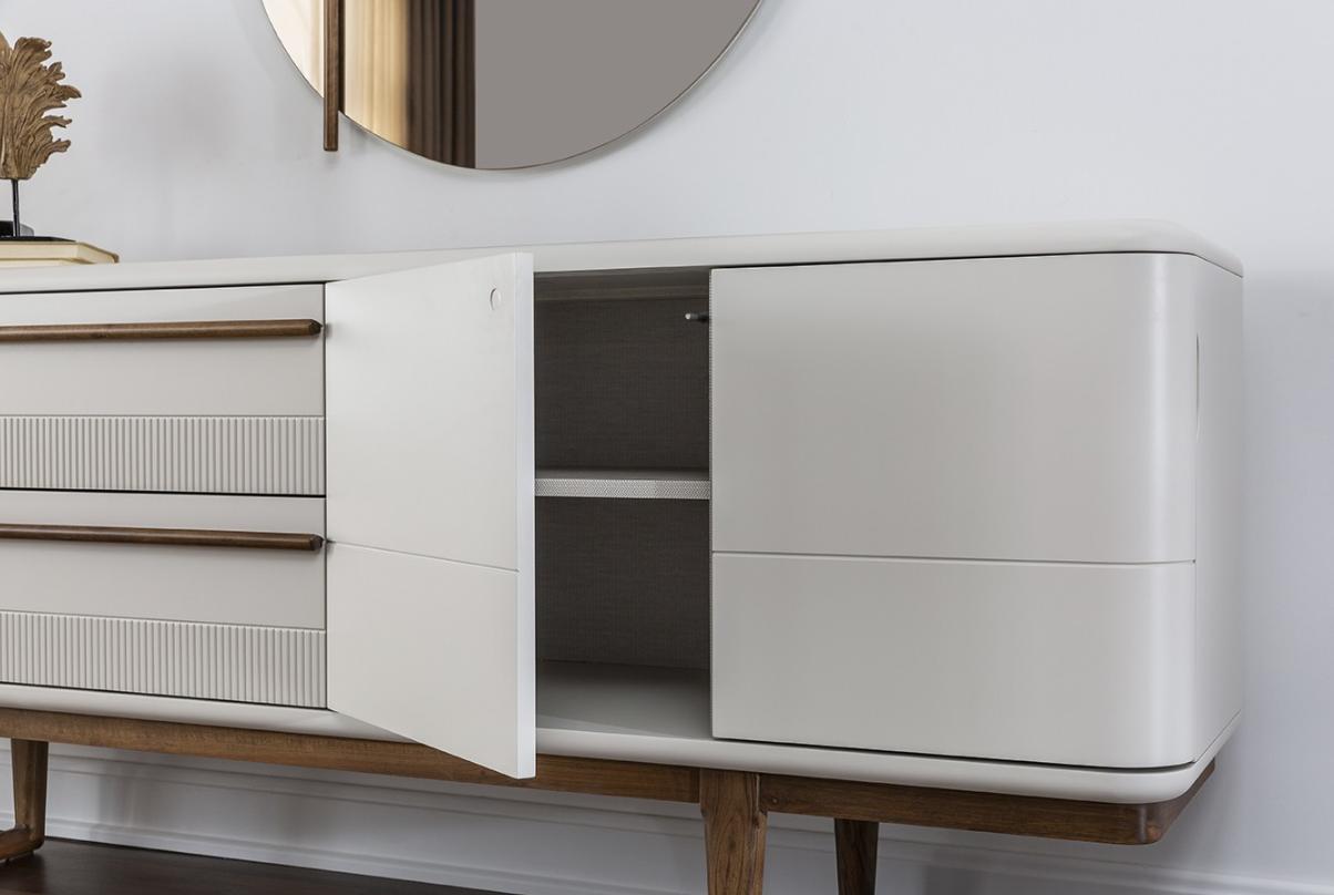 Sideboard Kommode Anrichte Zrcadlo Dřevo Jídelní pokoj Skříně Set Bílý