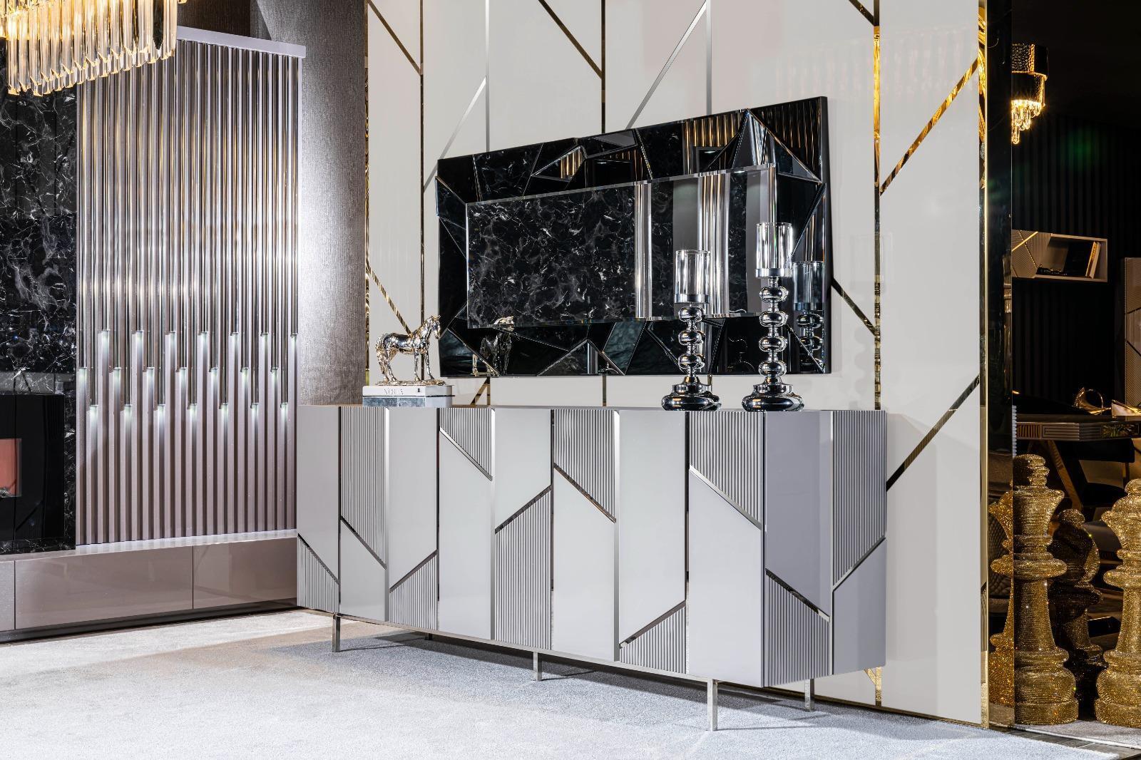 Obývací pokoj Sada nábytku Příborník Zrcadlo Skupina nábytku 2 díly Komoda Šedá