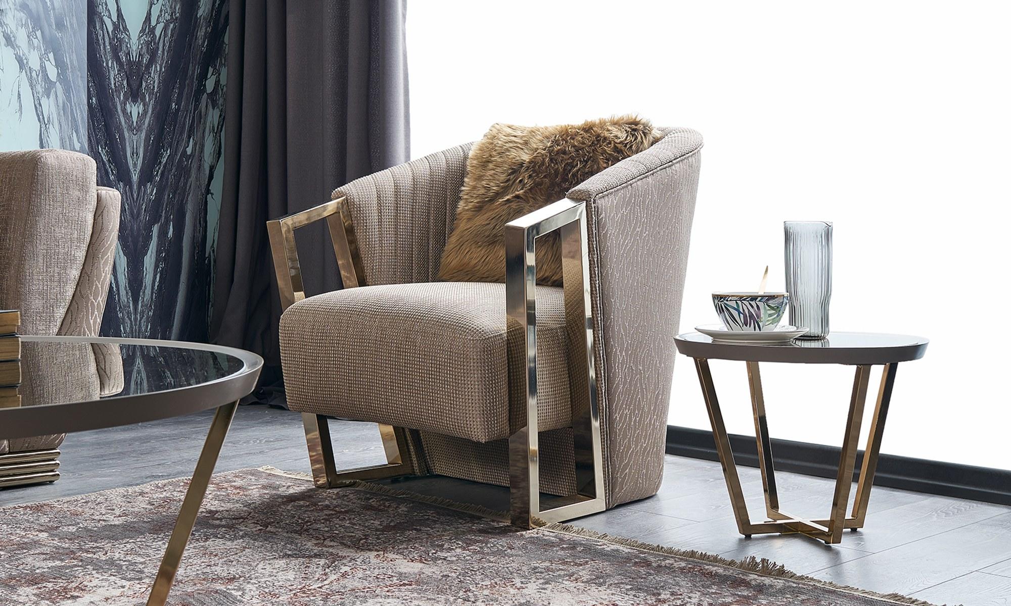 Moderní křeslo jednosedadlové látkové obývacího pokoje hnědé čalouněné sezení sedadlo