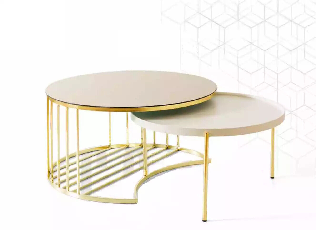 Moderní 2x nízký stolek ze železa v obývacím pokoji, nový zlatý