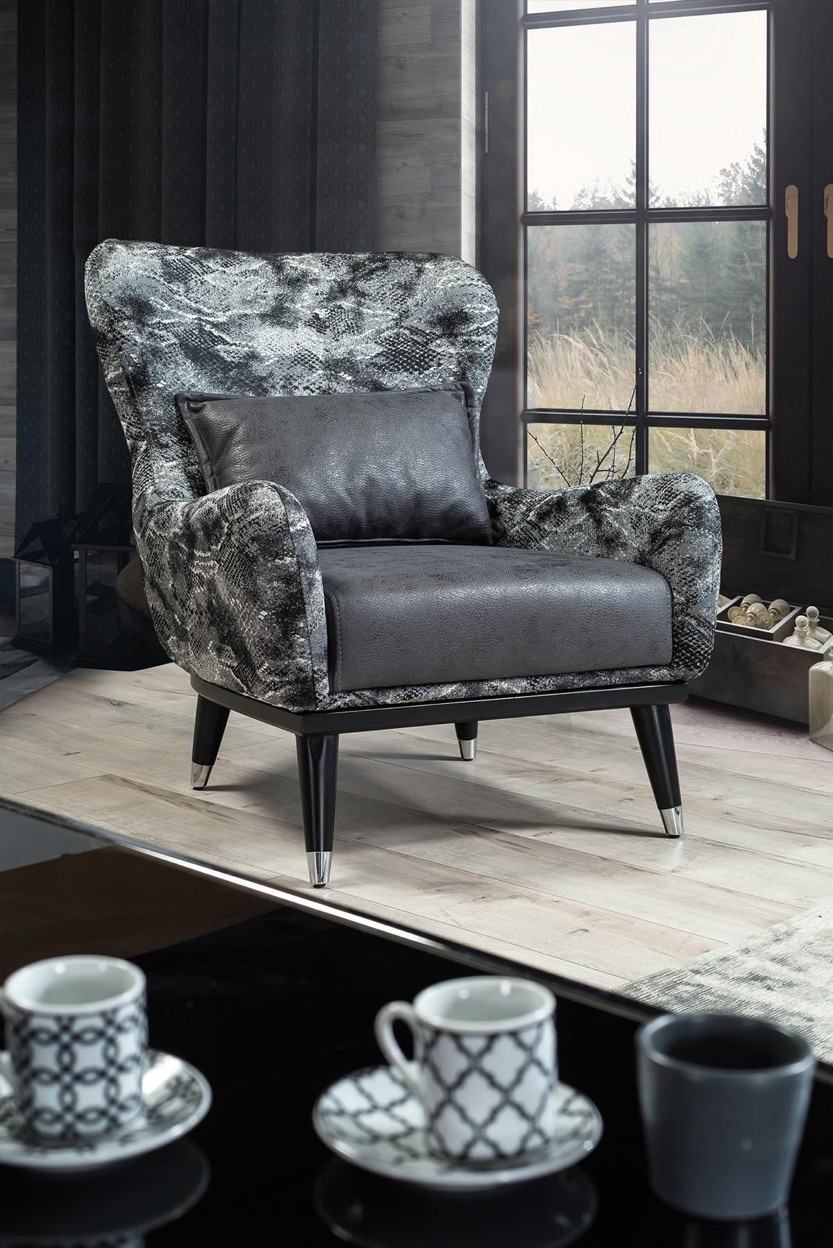 Vyberte si toto stylové křeslo jako hlavní kus nábytku pro váš obývací pokoj a doplňte je do vašeho interiéru jako výrazný designový prvek. Jeho moderní vzhled a hadí styl potahu okouzlí každého návštěvníka. Ideální na relaxaci při sledování oblíbeného filmu nebo čtení knihy. Obývací pokoj křeslo s povlečením je skvělou investicí, která zároveň doplní váš domov o elegantní prvek, který bude určitě zaujímat veškeré okolí.