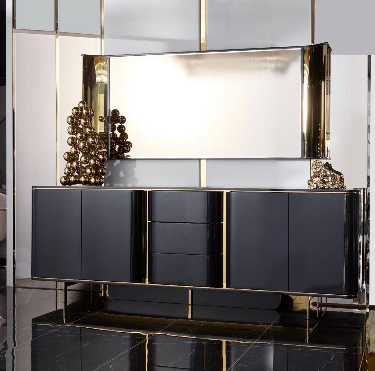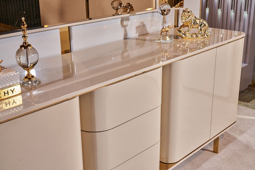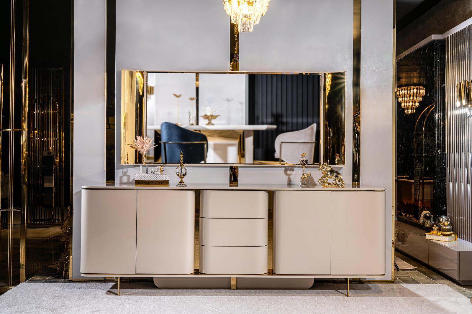 Obývací pokoj Skříň zrcadlo Materiál Dřevo s kovem Styl Moderní Beige.