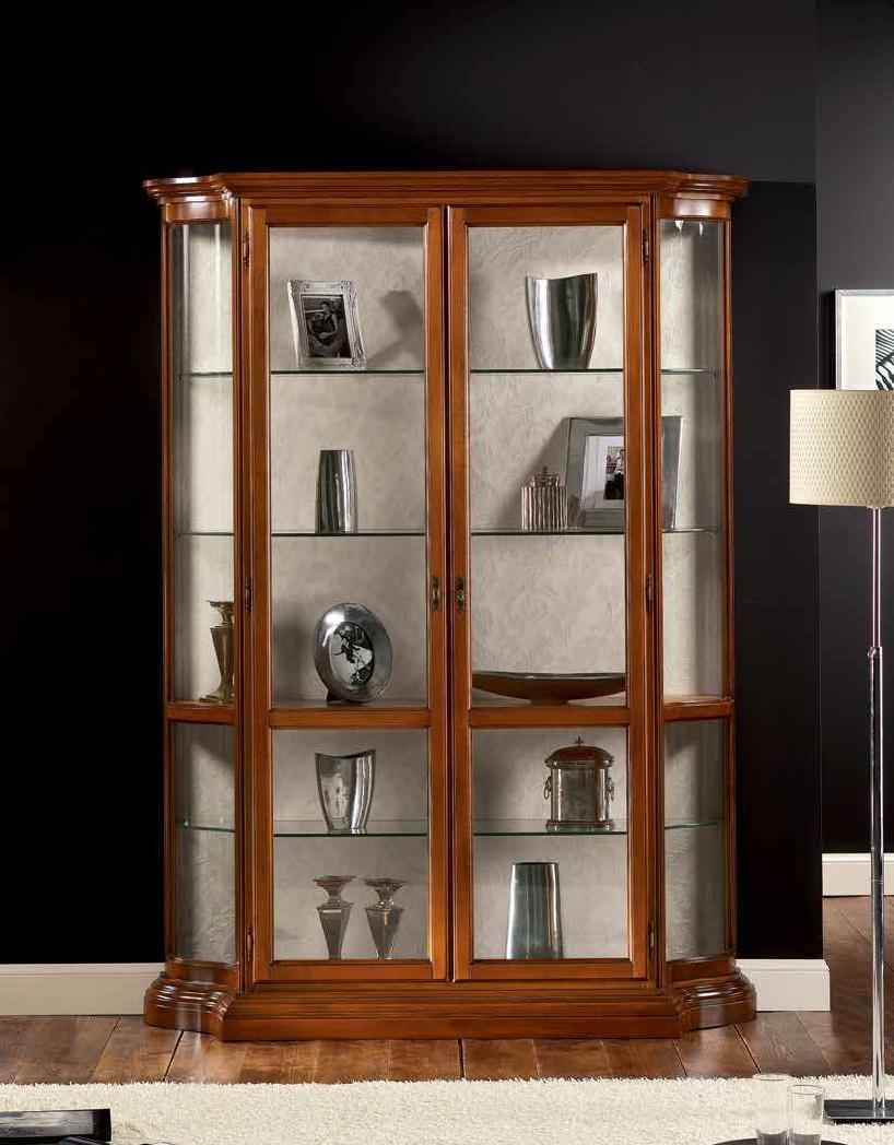 Skleněná skříň Luxus Vitríny Skříně Hnědá Vitrína Klasický Italský nábytek