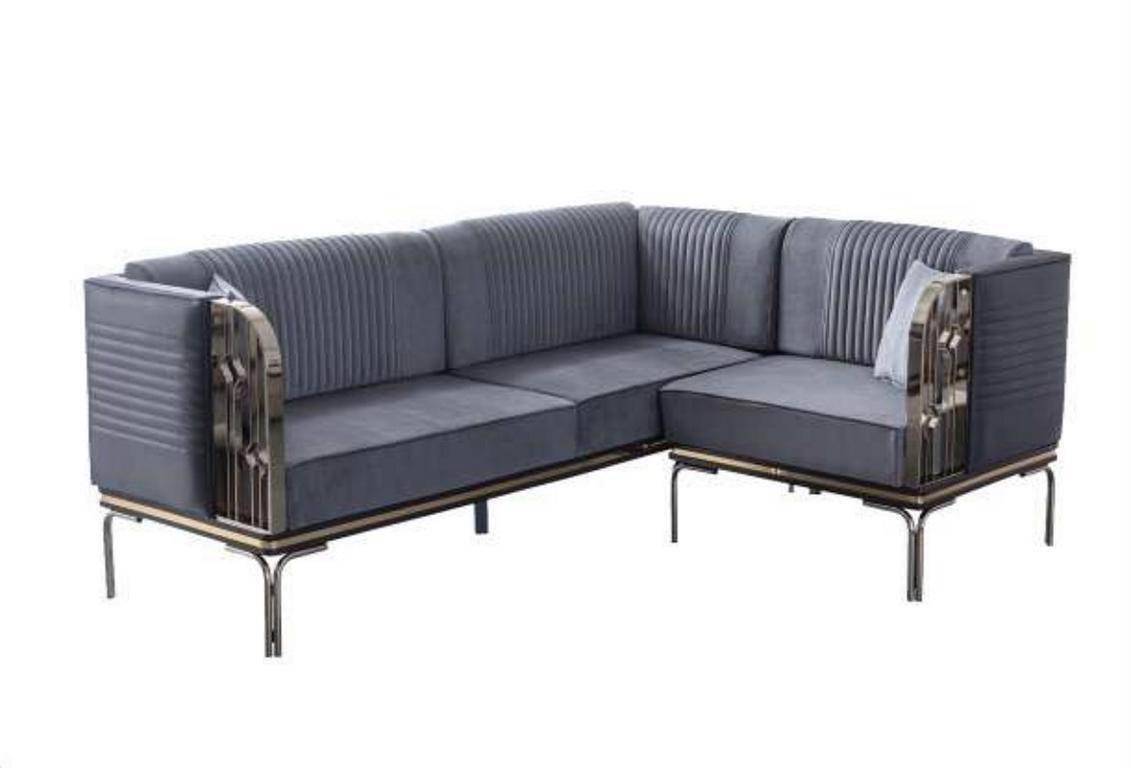 Exkluzivní šedá jídelní sestava Luxusní stůl ze nerezové oceli 2x textilní židle