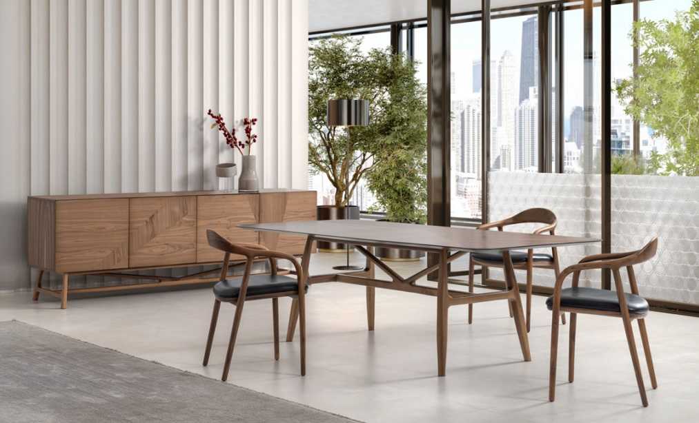 Jídelní sestavy, dřevo, nerezová ocel, cenově dostupné, italský styl, stůl, židle, příborník, zrcadlo