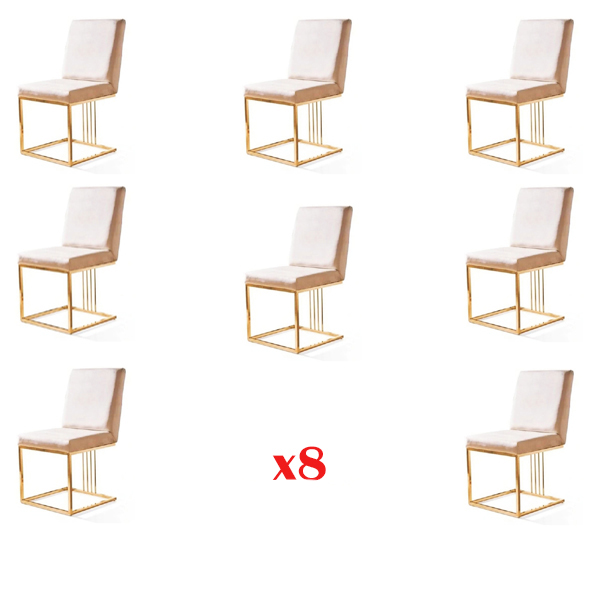 Design 8x židlí skupina set polstří Gastro je elegantním a moderním řešením pro vaši jídelnu nebo restauraci. Tato sada obsahuje osm židlí, které kombinují stylový design s kvalitními materiály. Vyrobené z nerezové oceli, židle jsou odolné a snadno se udržují. S jejich rozměry cca 56 x 58 x 82 cm poskytují dostatek pohodlí a prostoru pro pohodlné posezení během jídla. Díky sedákové výšce cca 44 cm jsou ideální pro stoly standardní výšky.