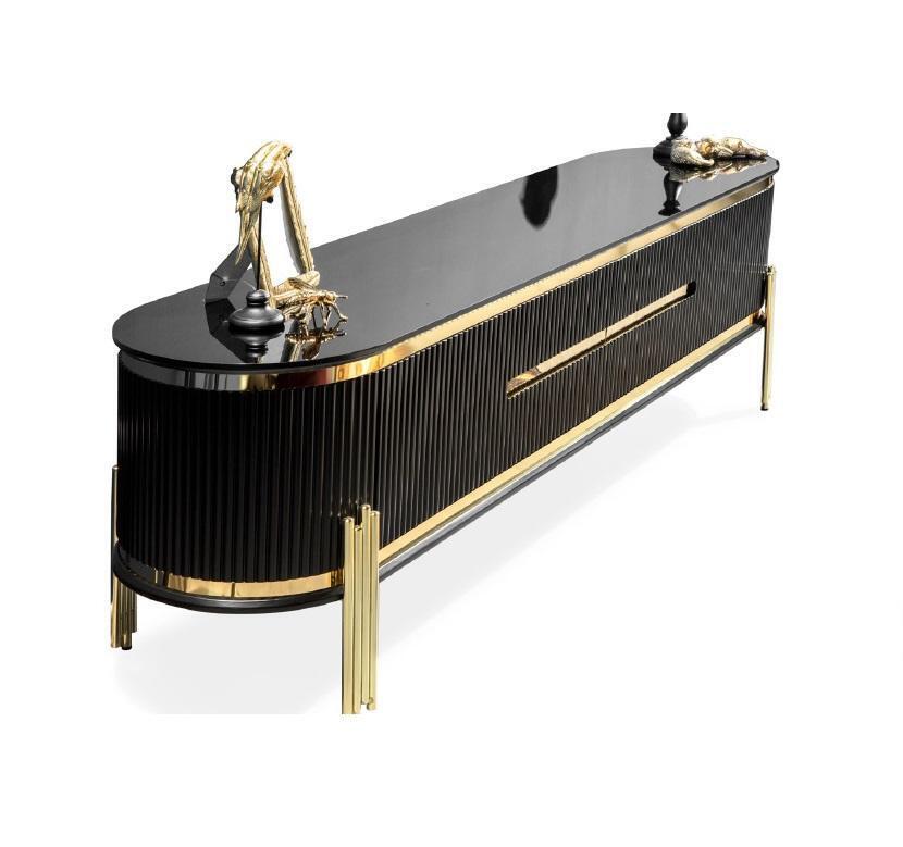 Luxus jídelní sestava s designovým stolem, komodou a 4 židlemi, skupina 6 dílů. Nová sada.