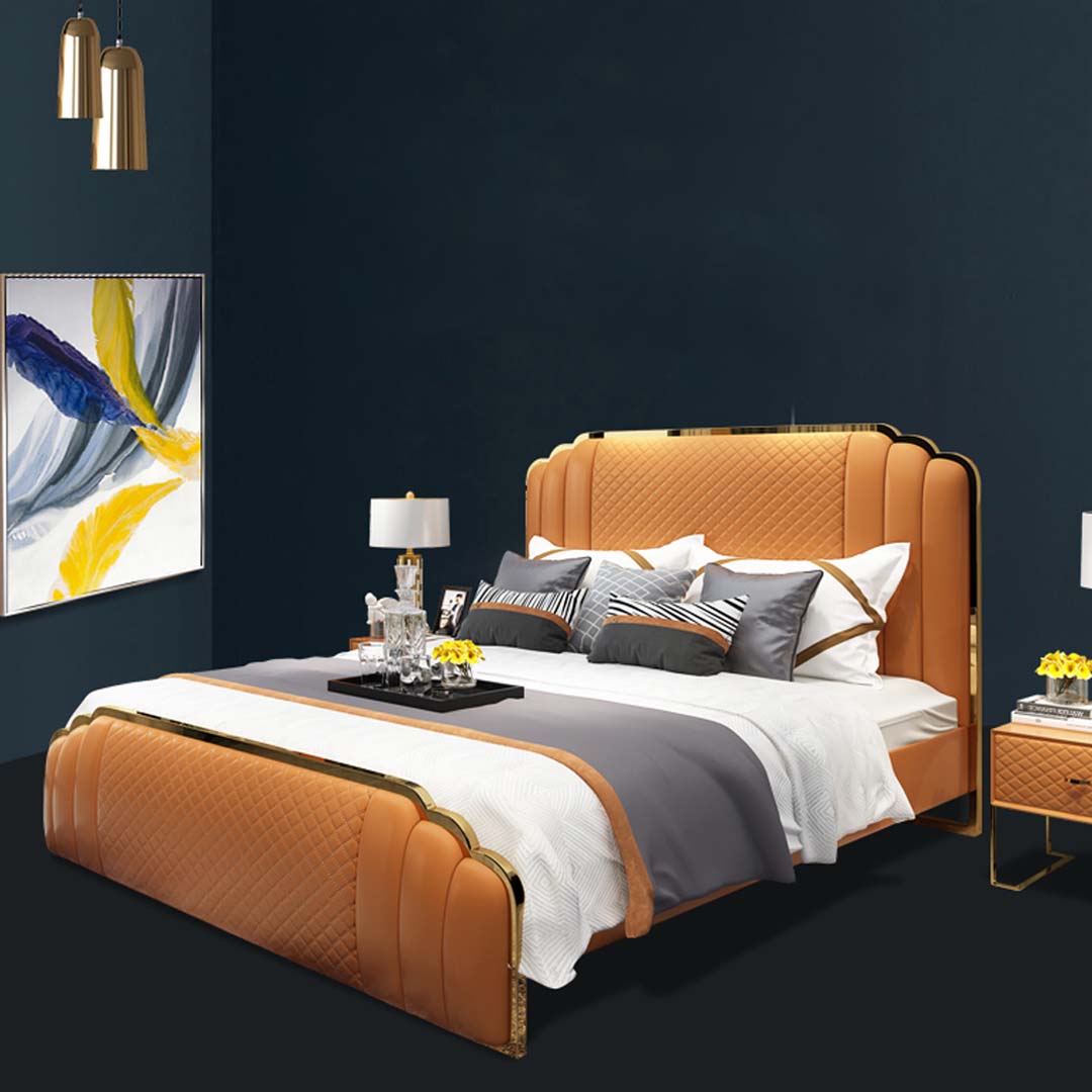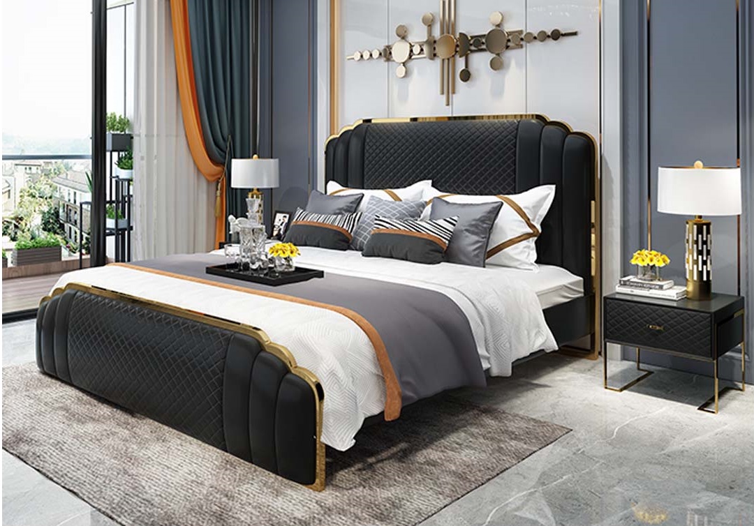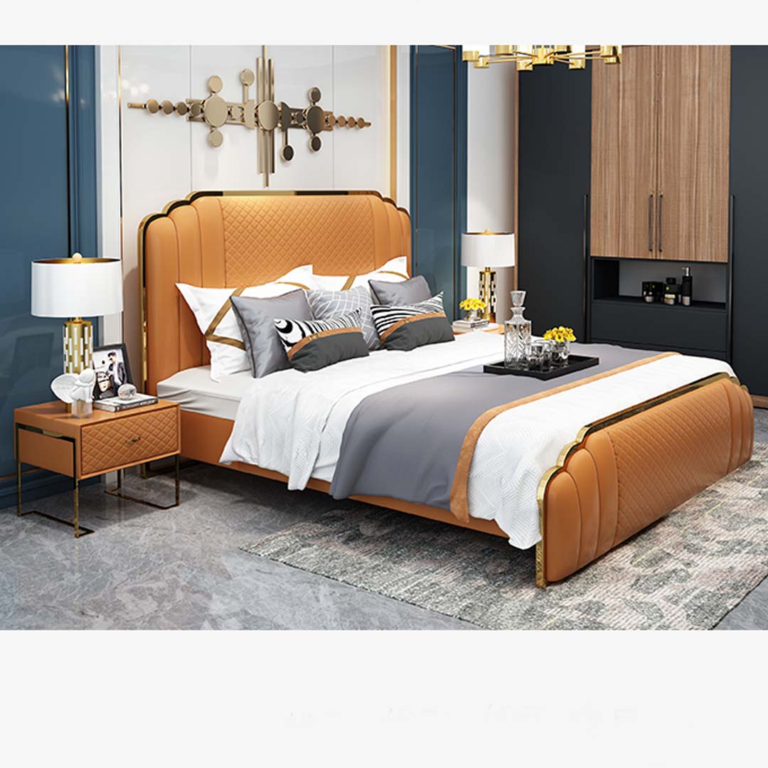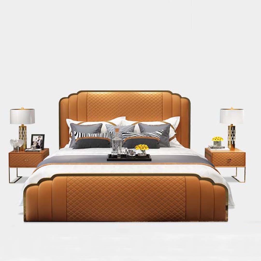 Designová postel z koženky do ložnice, 3dílná sada, 2x noční stolek, luxusní nábytek.