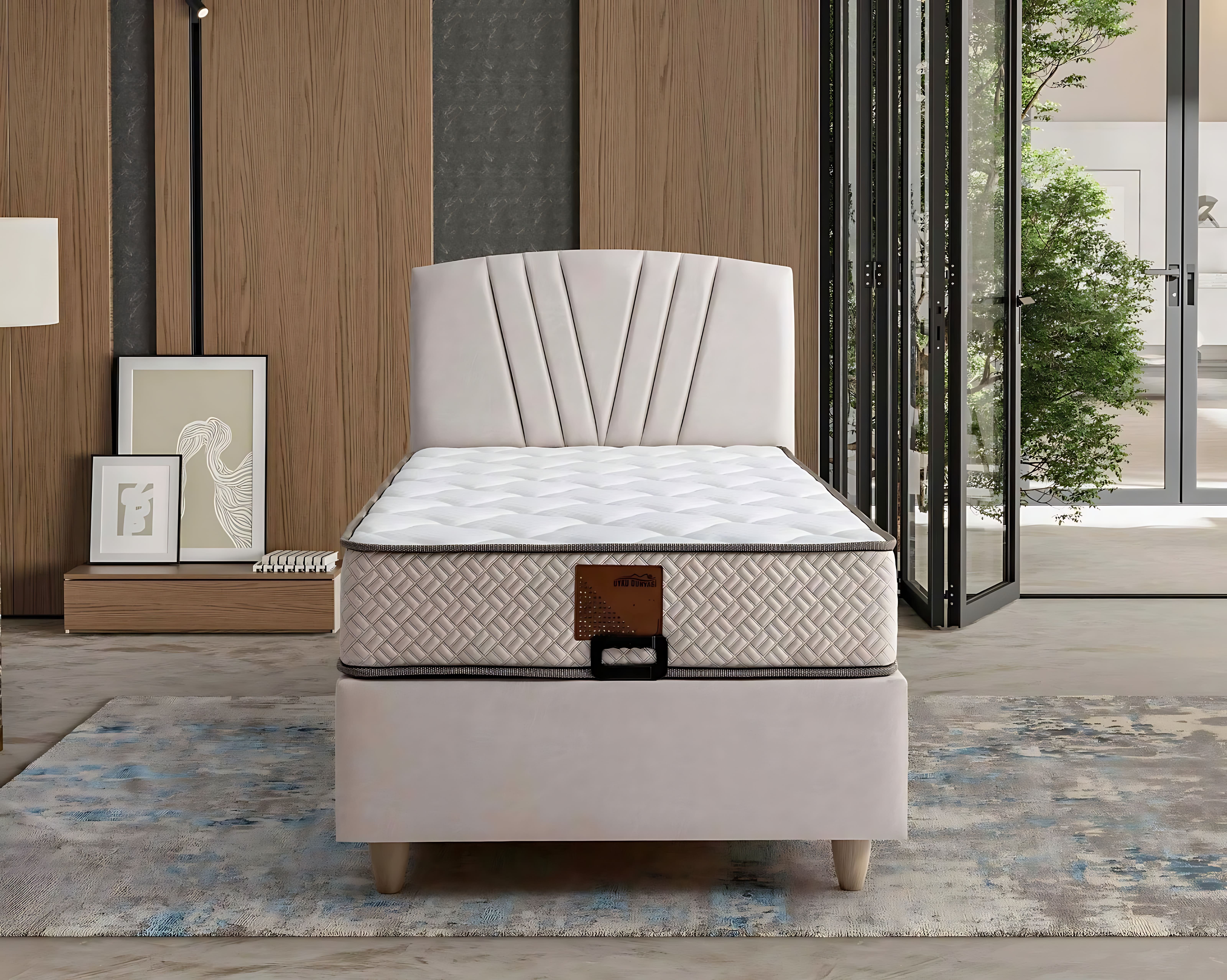 Elegantní postel s matrací v béžovém materiálu představuje vrchol rafinovanosti a komfortu. Její nádherný béžový odstín dokonale ladí s přírodními dřevěnými prvky, které dodávají prostoru nádech elegance. Každý detail byl pečlivě promyšlen, aby zajistil nejen estetický zážitek, ale také maximální pohodlí pro váš spánek. Tento kus nábytku je ideálním doplňkem pro ty, kdo ocení luxusní životní styl a touží po výjimečném prostředí ve svém domově. S dvacetiletou tradicí v oblasti luxusního nábytku je tato postel ztělesněním kvality a nadčasového designu, který přetváří váš prostor na oázu klidu a elegance.