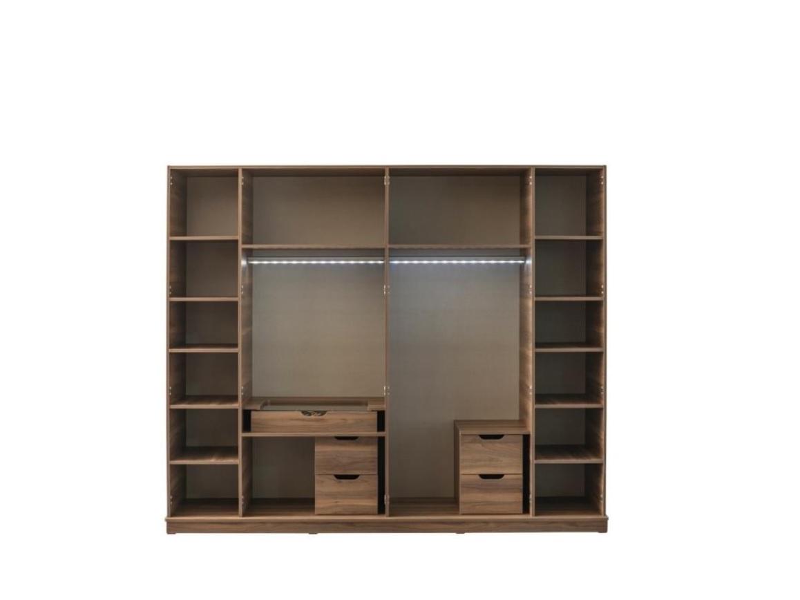 V této černohnědé ložnici si najdete také šatní skříň s rozměry cca 258 x 64 x 218 cm pro uspořádání vašich šatů a komodu cca 130 x 48 x 79 cm pro další úložný prostor. Zrcadlo o rozměrech cca 135 x 3 x 135 cm dokonale doplní interiér. Díky jedinečné barvě a designu bude tato ložnice skvělým doplňkem každé moderní domácnosti. Zařiďte svou ložnici jako královský palác s touto luxusní ložnicí v černohnědém provedení.