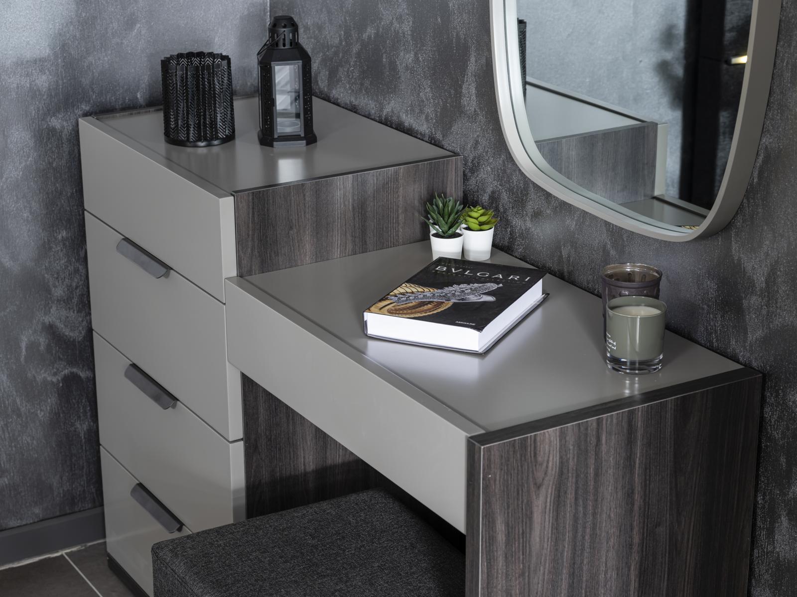 Šedá ložnice Sada kompletní nábytek Postel Skříň Nocní stolky Nábytek 5 kusů Dřevo