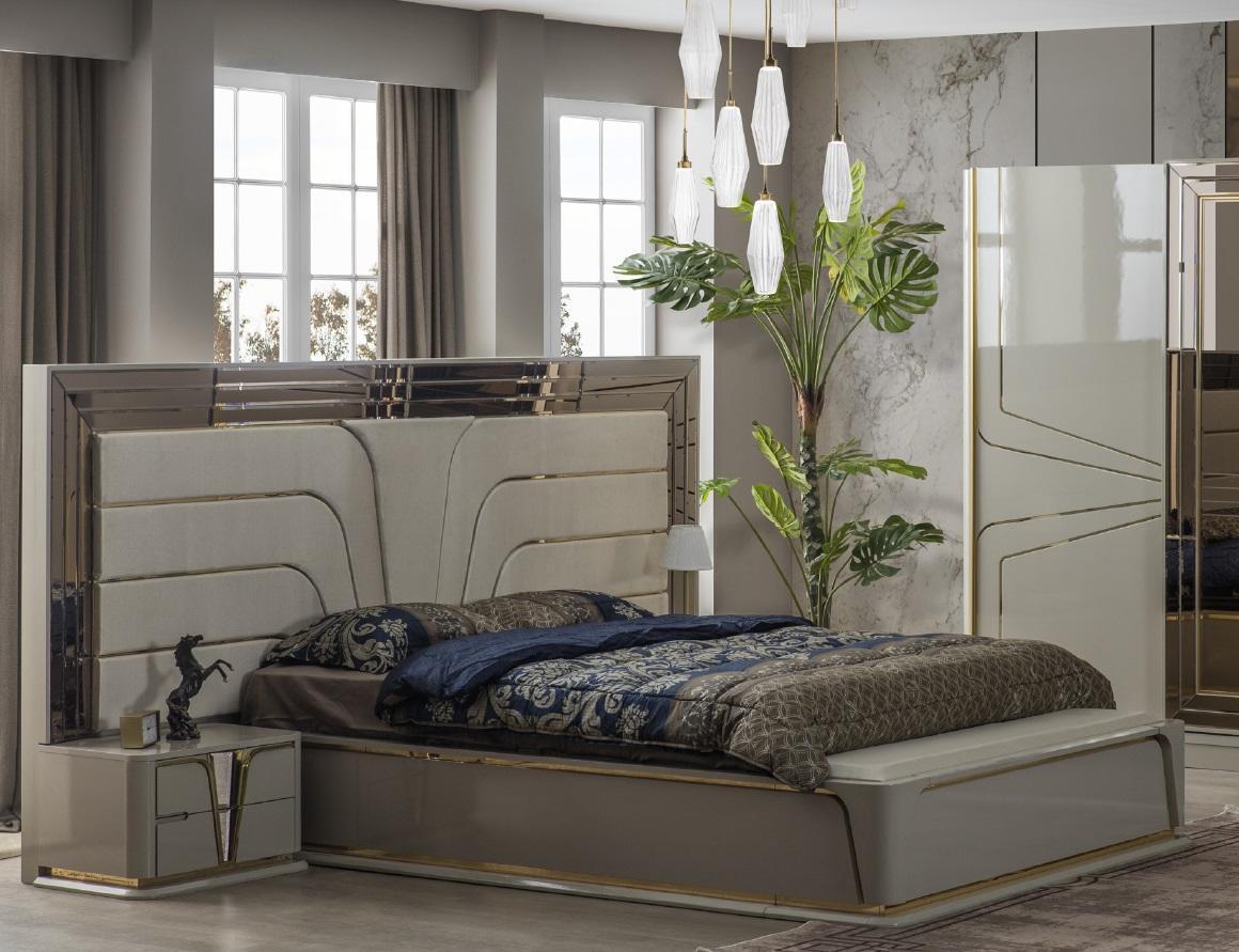 Moderní ložnice sady v béžové barvě s evropským akcentem.