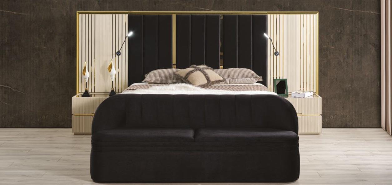 Tento úžasný kompletní pokoj ložnice nabízí skvělý způsob, jak přidat eleganci a pohodlí do vašeho domova. Součástí setu je dřevěné lůžko s rozměry cca 211 x 173 x 147 cm, poskytující ležící plochu cca 160 x 200 cm pro maximální pohodlí během spánku. Dále set obsahuje otoman s rozměry cca 176 x 43 x 73 cm ideální pro relaxaci a dva noční stolky a prostornou skříň pro praktické uložení oblečení a doplňků. Celý set je vyroben z kvalitního dřeva a textilu pro dlouhou životnost a trvanlivost.