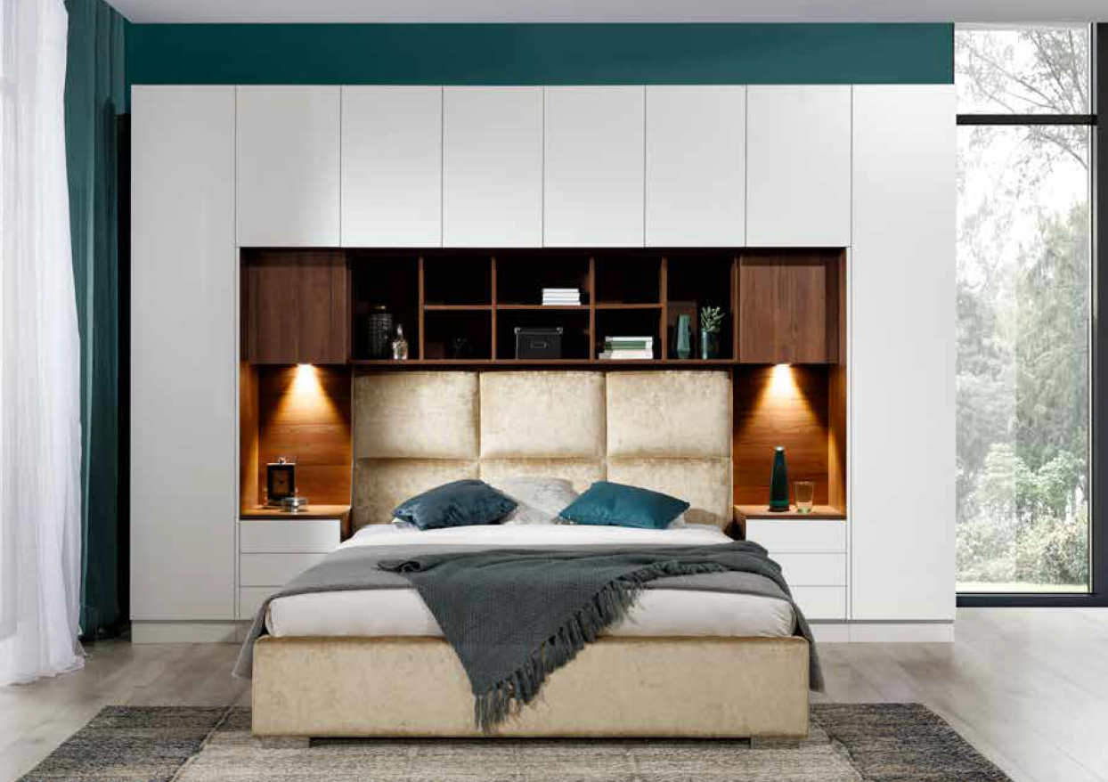 Ložnice zařízená pohodlnými postelemi a elegantními skříněmi je ideální volbou pro každého, kdo hledá spojení luxusu a pohodlí ve svém domově. S možností volby šířky postele od 140 do 160 cm a výšky skříně až 230 cm, tato kolekce nabízí flexibilitu přizpůsobení dle vašich potřeb a prostoru. Díky volitelnému vysokému lesku přední strany a široké škále barvových variant a materiálů se můžete rozhodnout, jakým směrem se chcete vydat při zařizování vaší ložnice.
