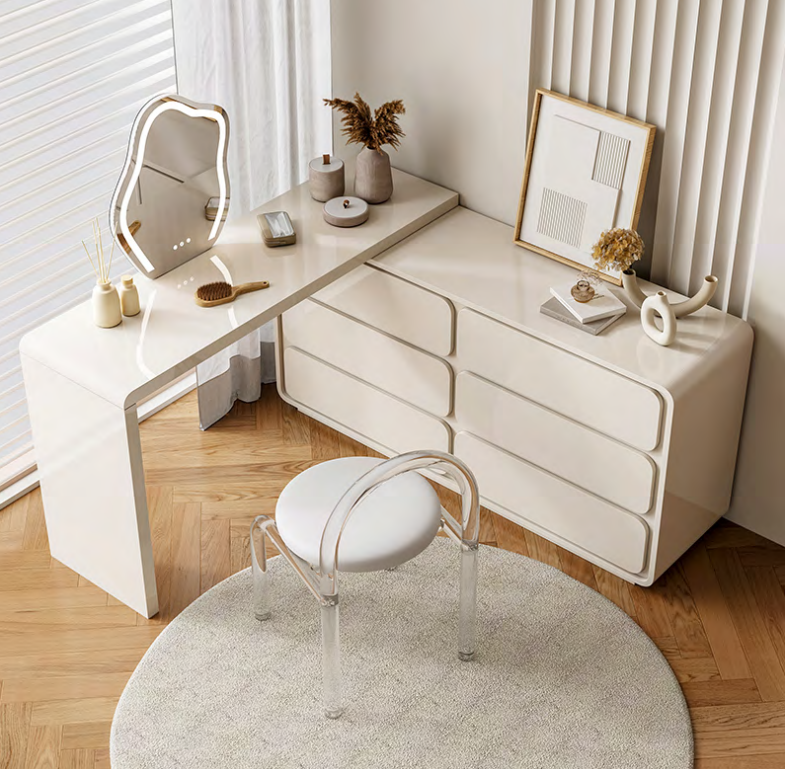 Bílý toaletní stůl Moderní toaletní stolek Roštový toaletní stůl s šuplíky