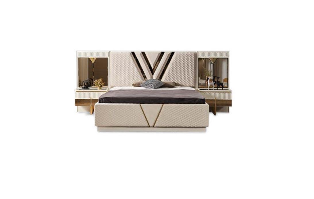 Ložnice 4-dílná sada - Polstrovaná postel, 2x noční stolek, luxusní šatní skříň.