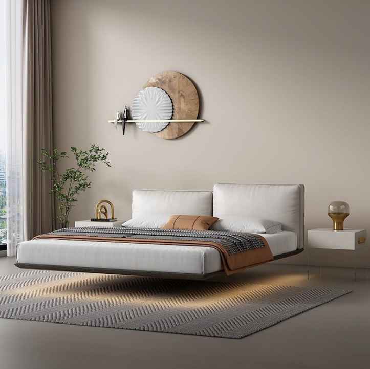 Bílá stěnová postel Designová svítidla Moderní ložnice Manželská postel Nová