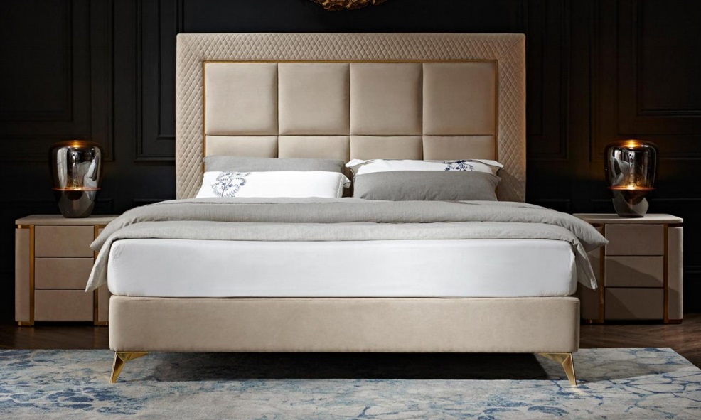 Design Luxus Doppel Hotel Betten Hotel Möbel Luxus Schlafzimmer Bett Polster Neu je luxusní dvojlůžková postel pro vaši elegantní ložnici. Toto exkluzivní kus nábytku spojuje moderní design s prvky hotelového luxusu. S rozměry cca 212 x 184 x 148 cm a plochou na ležení o velikosti 180x200 cm poskytuje dostatek prostoru pro pohodlný spánek a relaxaci. Materiál z dřeva s nerezovou ocelí a textilními prvky zaručuje jak kvalitu, tak designovou výjimečnost. Výrazná barva dodává posteli eleganci a zároveň se snadno sladí s prostředím vaší místnosti.