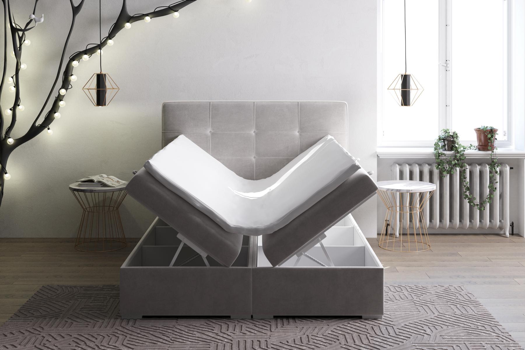 Boxspring postel Hotel Double Samt textilie Luxus Postele Polstrování odkládací prostor Funkce