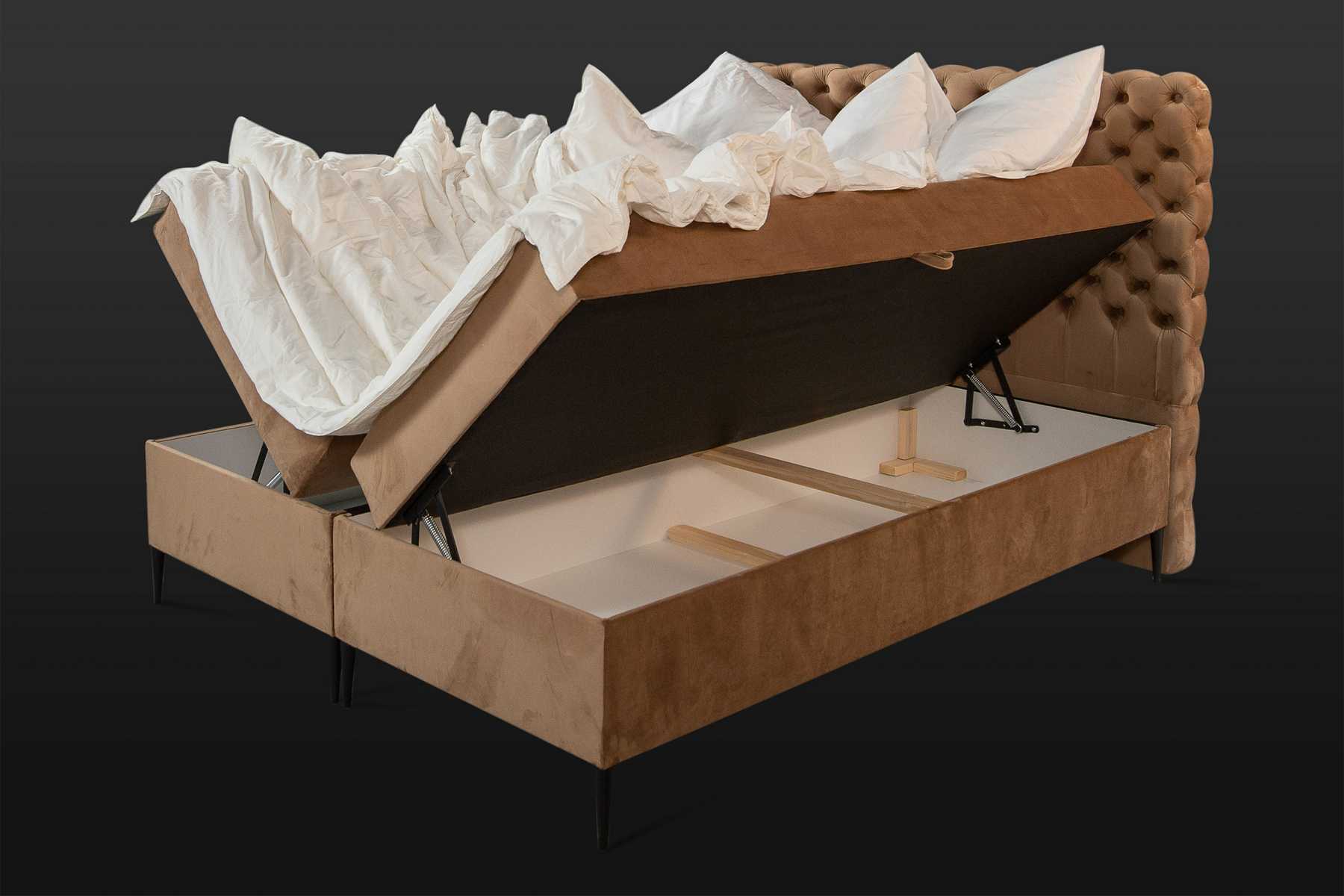 Textilní postel hnědá luxusní dvoulůžková postel Chesterfield designu ložnice