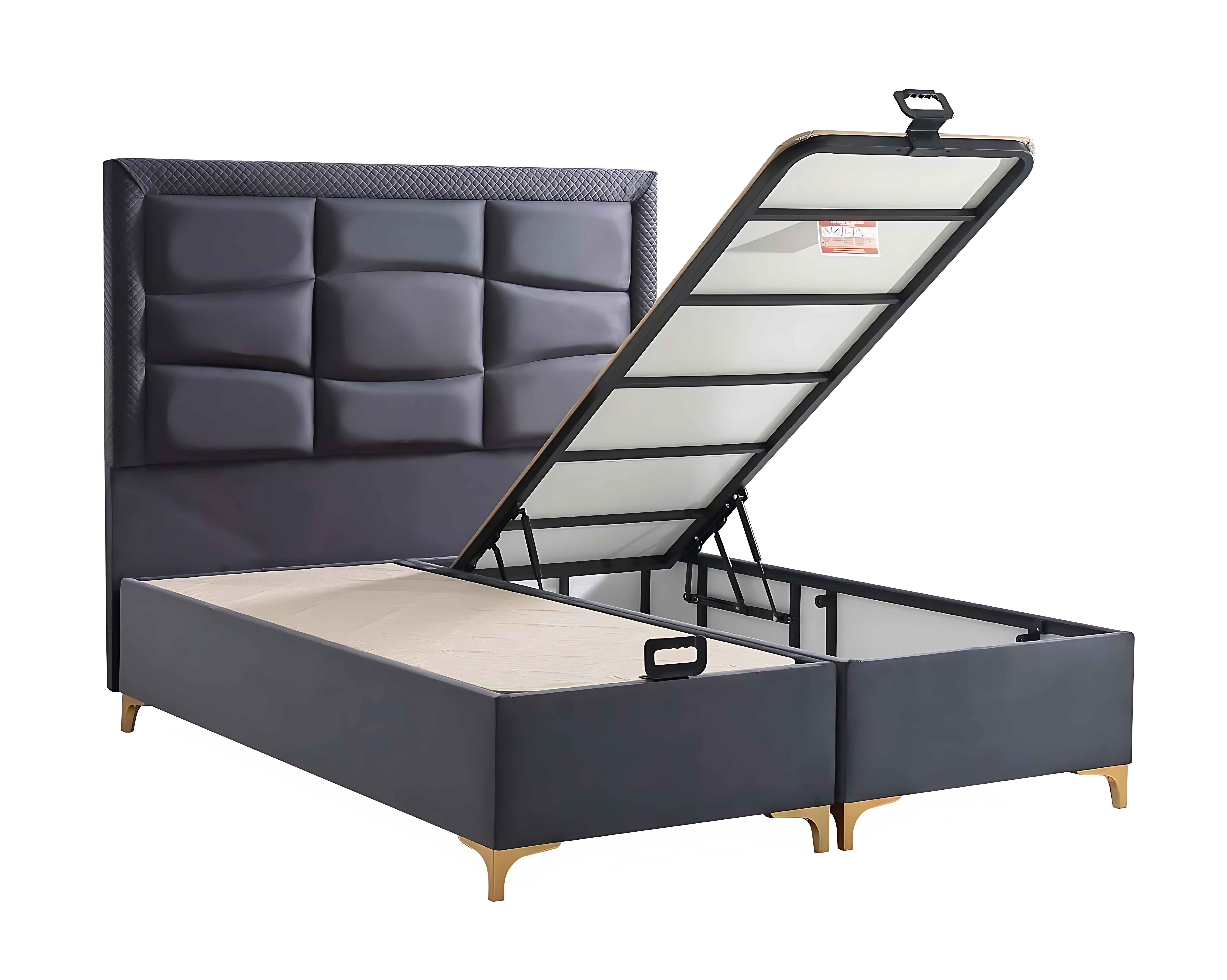 Nová šedá postel s matrací z textilu a dřeva je dokonalým spojením elegance a komfortu. Její sofistikovaný design z šedého dřeva přináší do vašeho interiéru nádech luxusu a vytváří harmonickou atmosféru pro odpočinek. Vysoká kvalita použitých materiálů zaručuje nejen estetický zážitek, ale i dlouhou životnost. Ergonomická matrace, obohacená o jemný textil, vám poskytne neporovnatelný komfort a podporu během spánku. Tato postel se stane centrálním bodem vaší ložnice, odrážející váš vkus a životní styl. S více než dvacetiletou tradicí v oblasti luxusního nábytku představuje tento kousek ideální volbu pro ty, kteří ocení jedinečnost a prvotřídní kvalitu.