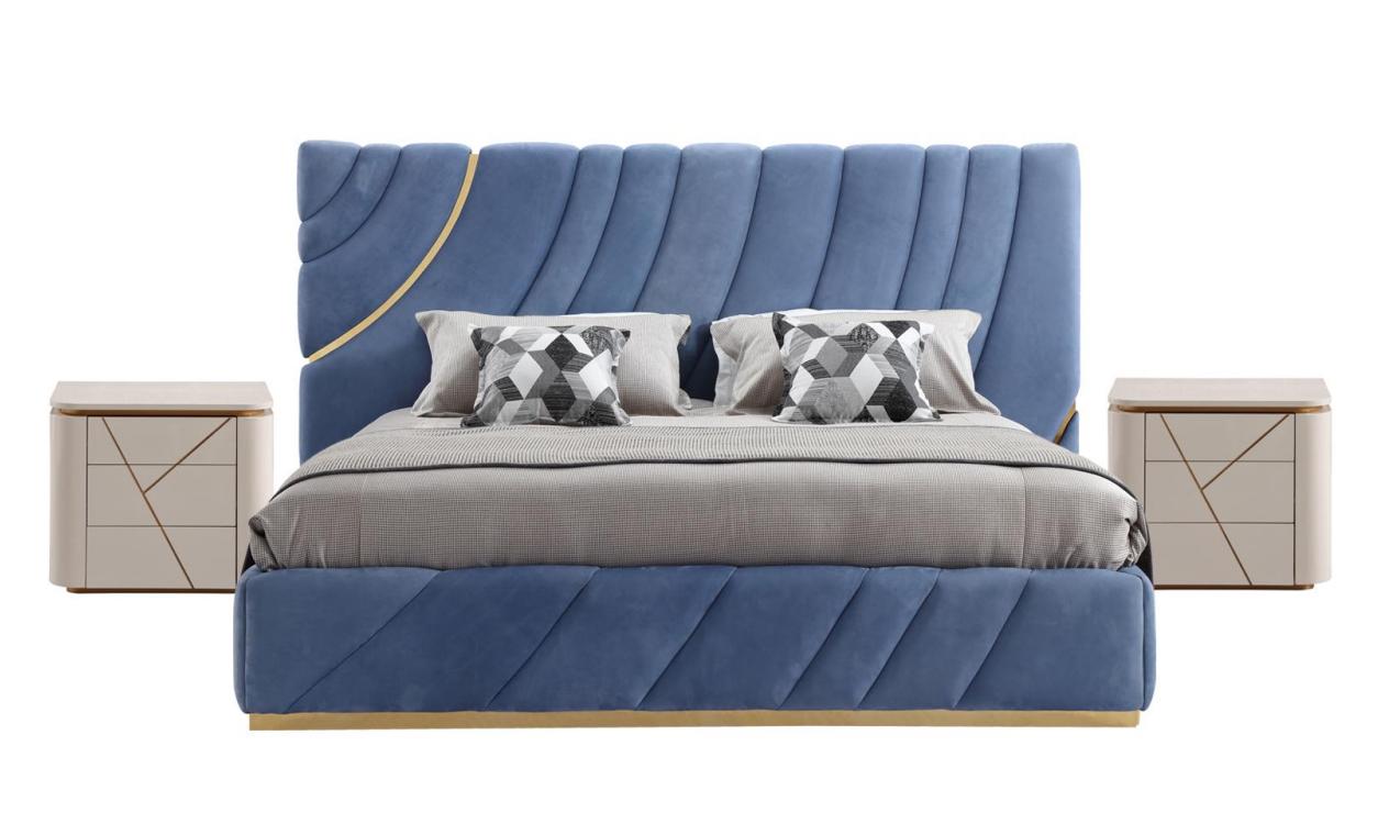 Ložnice set Postel 2x Noční stolky 3dílný Modrá nová Moderní Kompletní Luxusní Nábytek