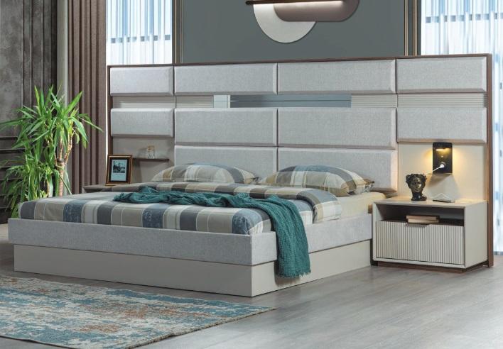 Bílé ložnice nábytek, designérská manželská postel