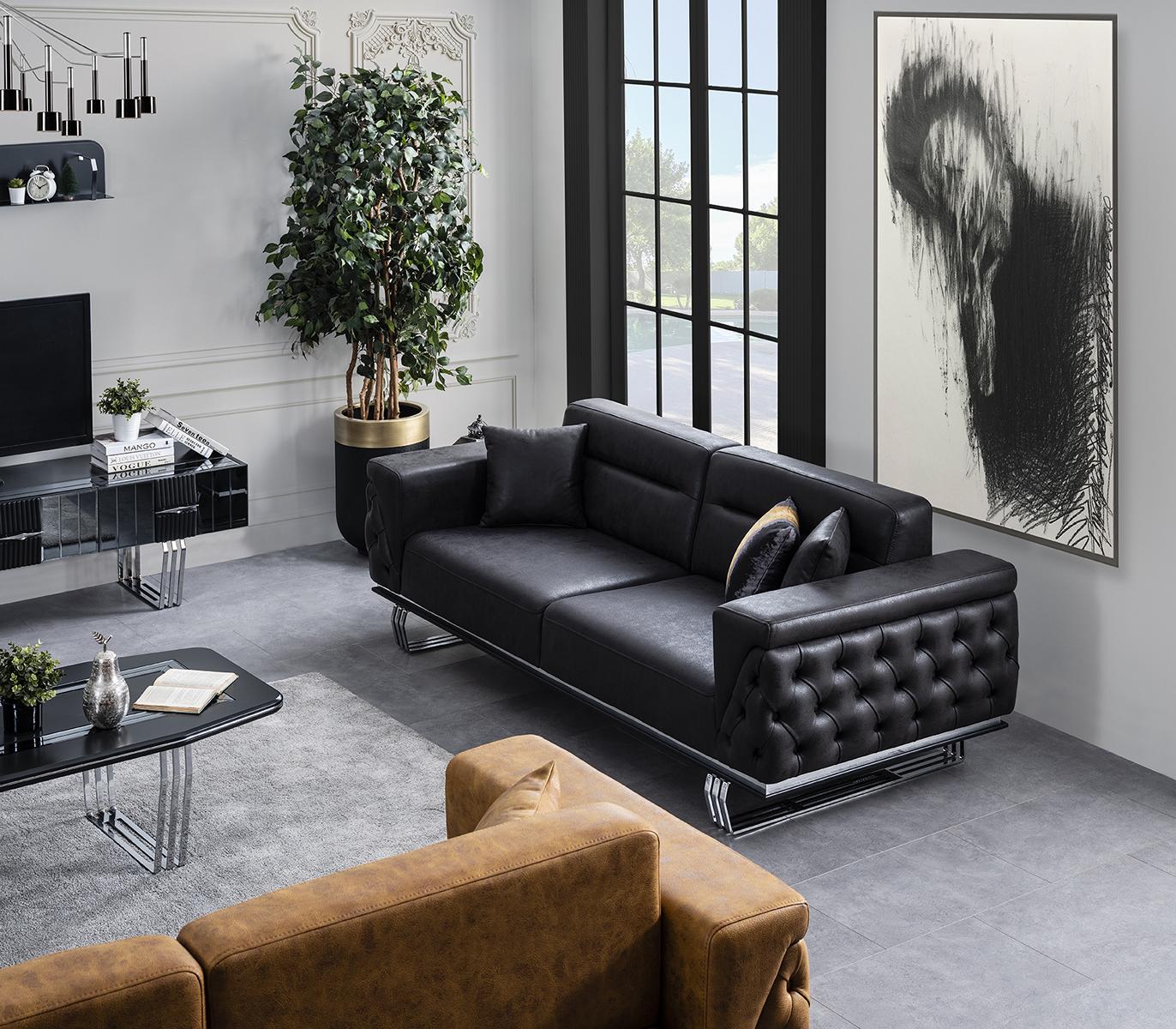 Třímístná sedací souprava, 3místné sedací soupravy, černá kožená sedací souprava do obývacího pokoje luxusní.