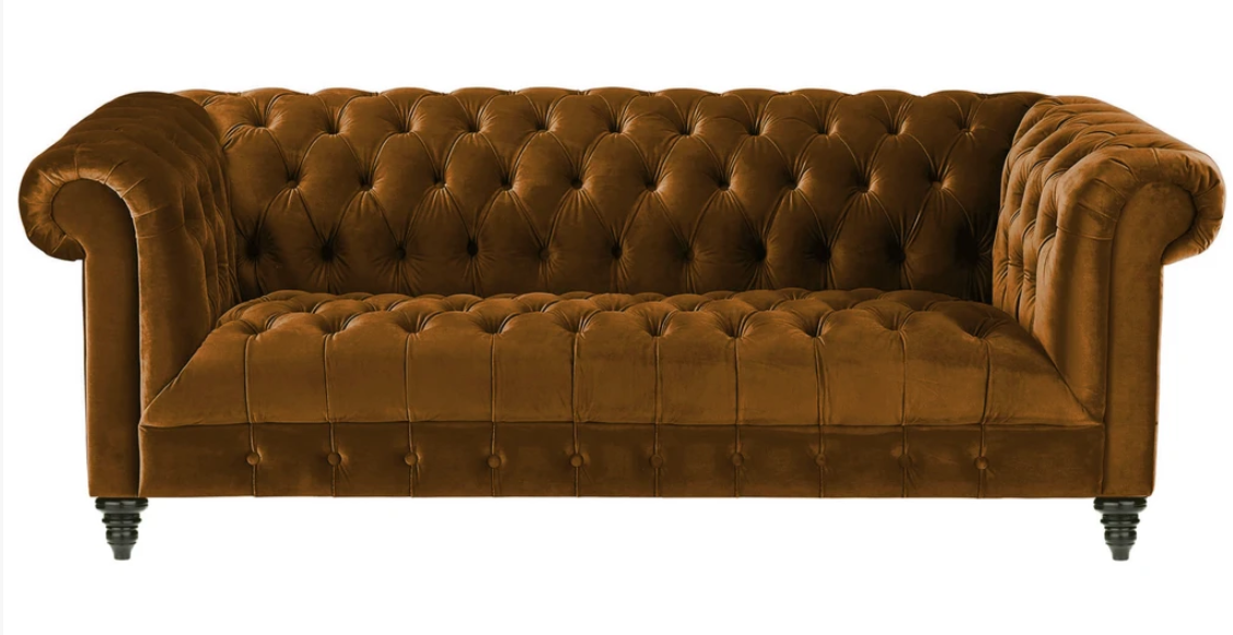 Trojsedačka Chesterfield hnědý textilní gauč Nový Originální design Pohovky Čalounění
