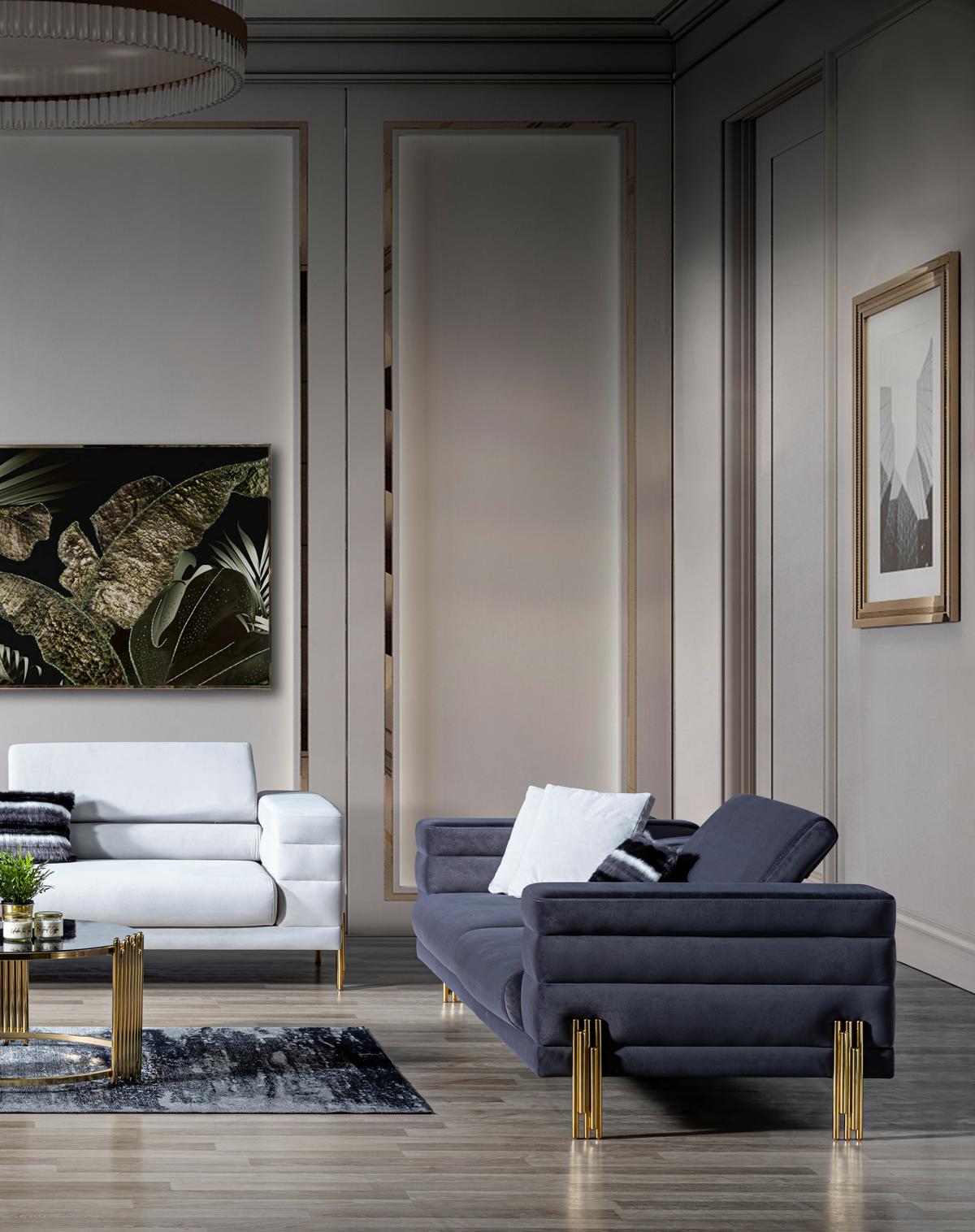Výrazná barva jak je znázorněna dodává moderní a luxusní vzhled celému sedadlu. Vhodná pro prostornější obývací pokoje nebo salony, tato sedací souprava je ideální pro relaxaci, sledování televize nebo posezení s rodinou a přáteli. Začněte si užívat zasloužený odpočinek s touto luxusní pohovkou, která bude elegantním vybavením vašeho domova.