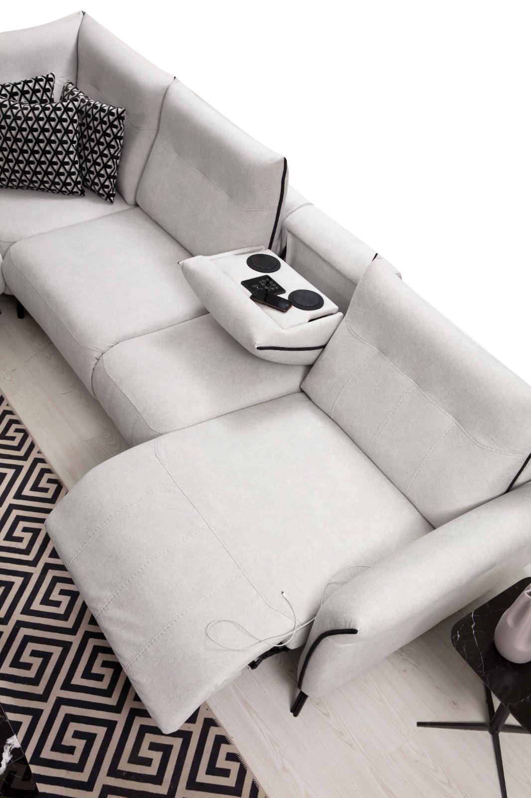 Bílá rohová sedací souprava L-tvaru obývacího pokoje potah z textilu pohovka moderní nábytek