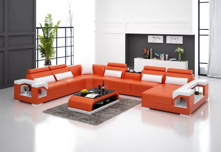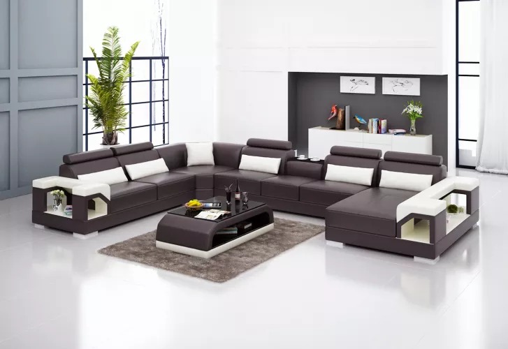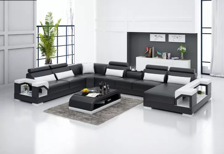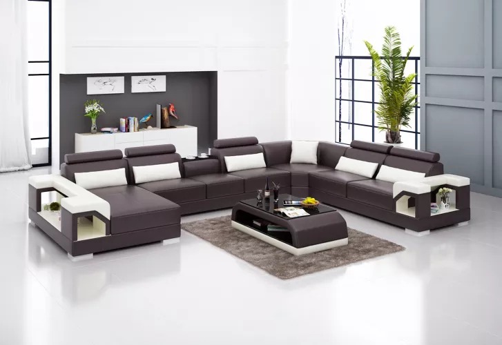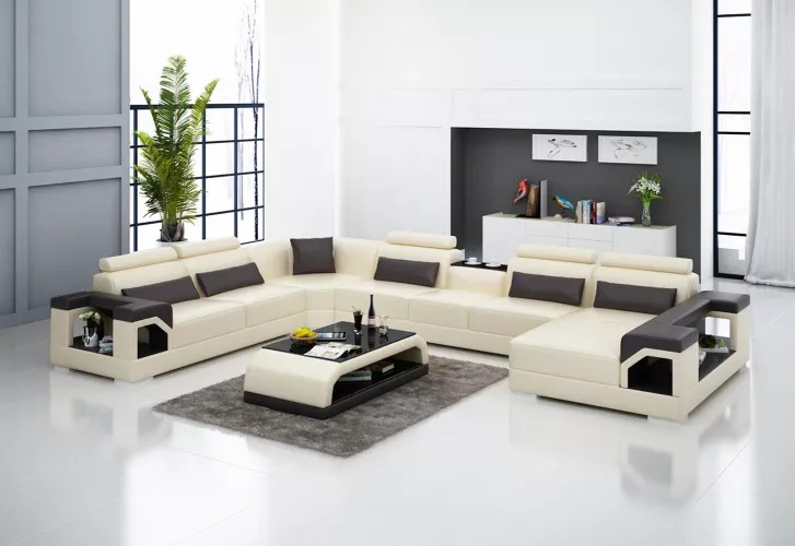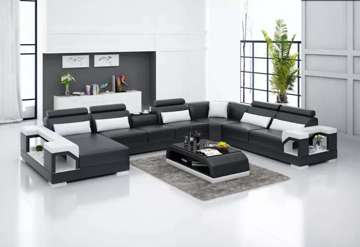 Kupte si U-fofrovou sedací soupravu levně s koženým čalouněním, pohovka do obývacího pokoje.